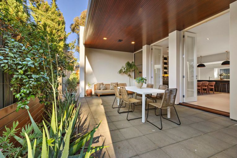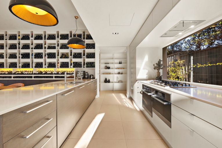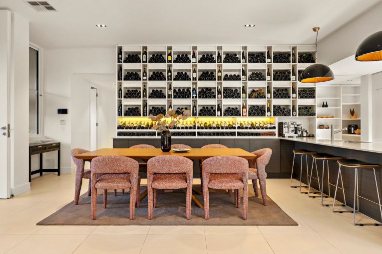 Other highlights of the property include the four-metre-high ceiling in the entrance and master wing; the open-plan living, dining and kitchen area; floor-to-ceiling windows to bring in abundant natural light; a feature wine wall for the couple’s extensive wine collection; a home office with a built-in desk and shelving; and an undercover alfresco dining area.