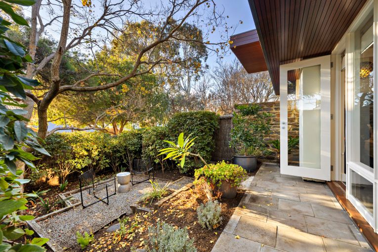 The spacious garden was also extensively landscaped and now features quince, pomegranate and lime trees as well as irises, a herb garden, a bay tree, frangipanis and viburnums.
