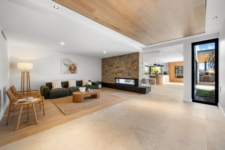 Other standout features include a chef-worthy kitchen, a mirrored wine cabinet, a dual-way fireplace clad in stone, a games room with a bar, a private cinema, an alfresco entertaining space, a cedar-lined sauna, a solar-heated swimming pool and a jet spa.