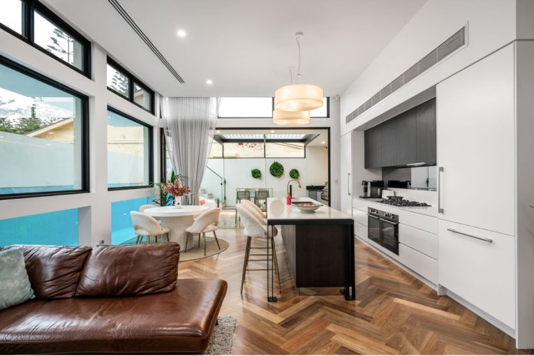 Take a look through the aquarium-style pool windows of this Henley Beach South home on the market this week, offering ocean views and a short walk to Henley Square.