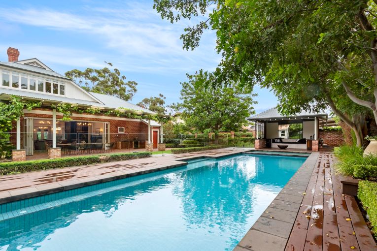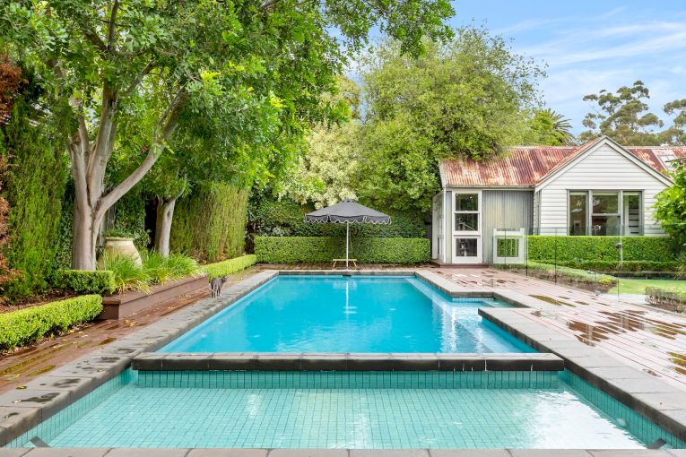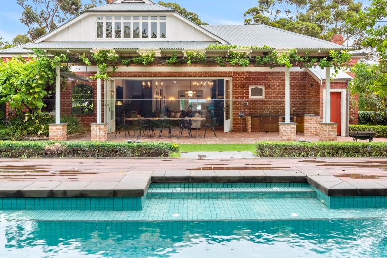 Across the expansive grounds, a vine-covered alfresco pavilion with built-in barbecue overlooks the sparkling swimming pool, adjacent cabana and self-contained granny flat.