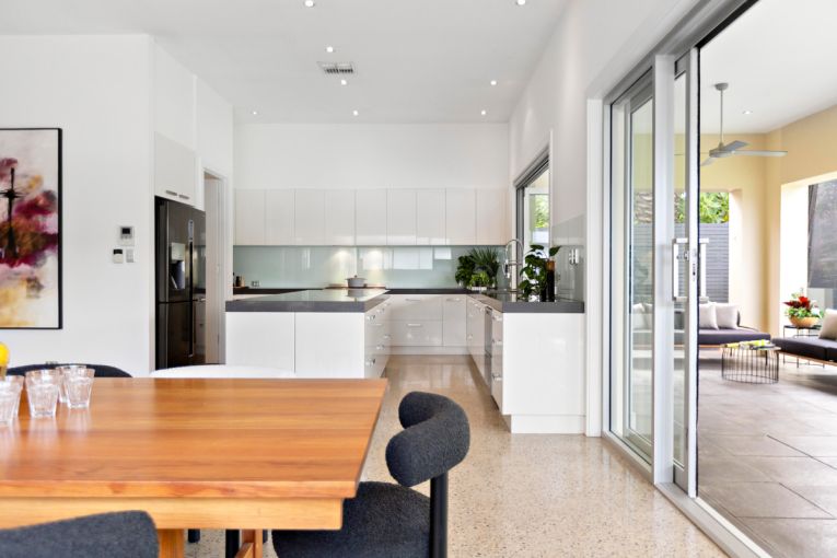 The extension includes an alfresco entertaining area that feels connected to the interior spaces.
