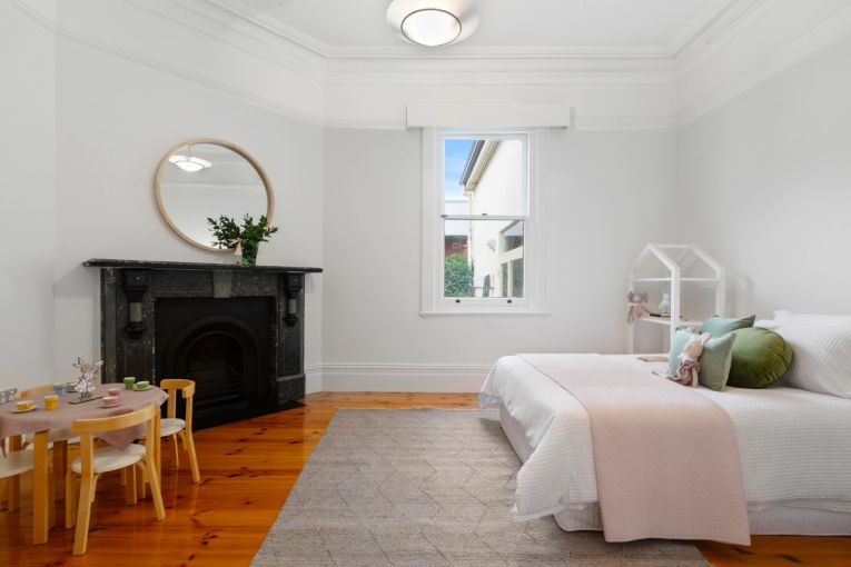 The home features three-metre ceilings, a large kitchen with a three-metre-long island bench, a generous butler’s pantry and a temperature-controlled room for wine storage. Mandy and Kingsley jokingly refer to this as their panic room.