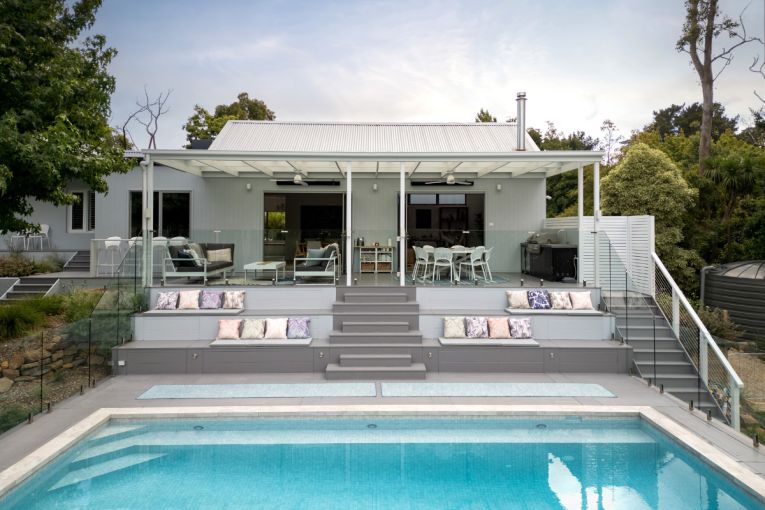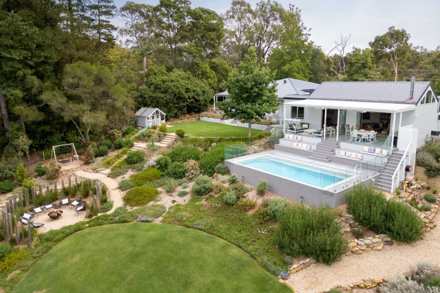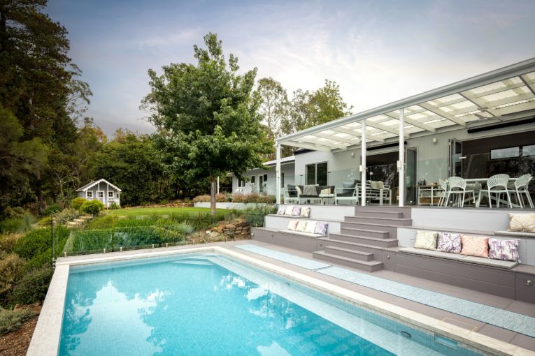 After an extensive three-year renovation, the home now features five bedrooms, three bathrooms, a media room, a pool and outdoor alfresco, an orchard, seven vegetable gardens and a fire pit.