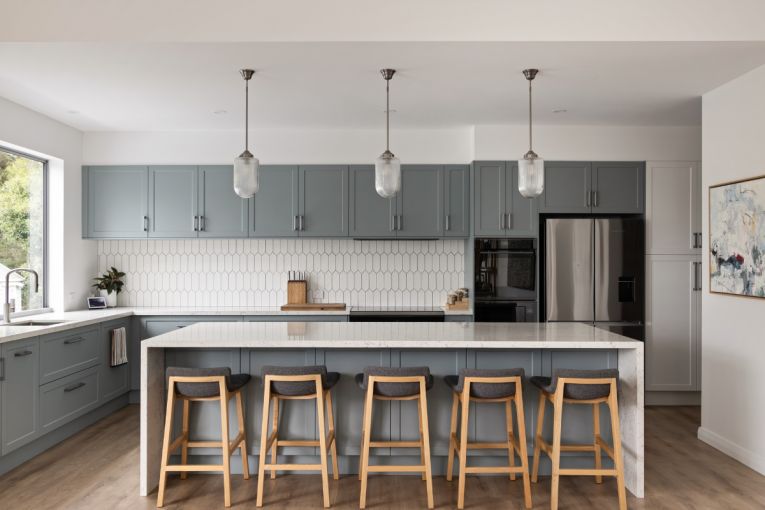 Nardia wanted to keep the aesthetics light and bright, its coastal palette of soft blues, greens and whites capturing the retreat feel they were seeking with their tree change.