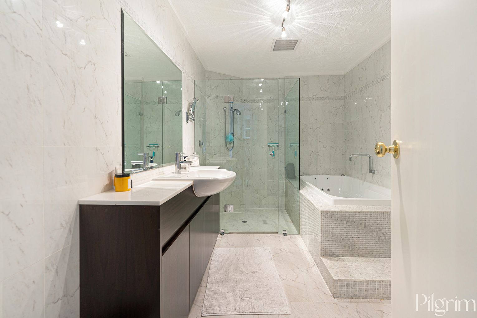 The master suite is a private sanctuary of indulgence, with a grand walk-in robe and sumptuous ensuite featuring a spa bath. The second bedroom offers built-in robes, while the third boasts a generous walk-in robe. A large executive home office provides the perfect setting for modern work-from-home living. The main bathroom and separate toilet enhance convenience, while the internal laundry opens onto a private balcony. Abundant storage and split-system air conditioning in every room complete the living experience.