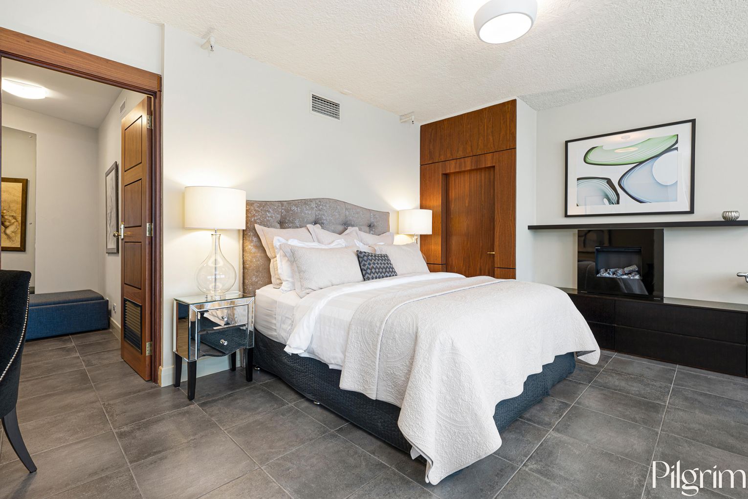 Adding an exceptional layer of versatility and luxury, the property also includes a fully self-contained private suite on the same level, ideal for guests, extended family, executive use, or premium short-stay income. Overlooking the square, this sophisticated space features a full bathroom with bath, open-plan kitchen, lounge and sleeping area, dressing room, study nook, built-in speakers, and a fireplace, offering five-star independence while remaining seamlessly connected to the main residence.