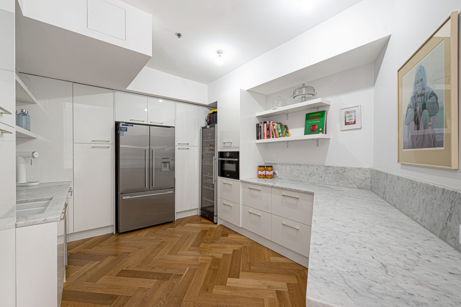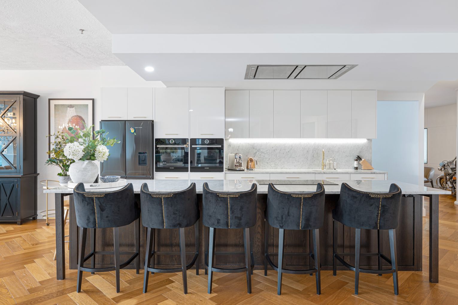 The gourmet kitchen is a masterpiece of design and function, featuring premium Bosch appliances including four ovens and two dishwashers, luxurious marble benchtops, and an oversized butler’s pantry, perfect for hosting lavish dinners or enjoying refined everyday living.