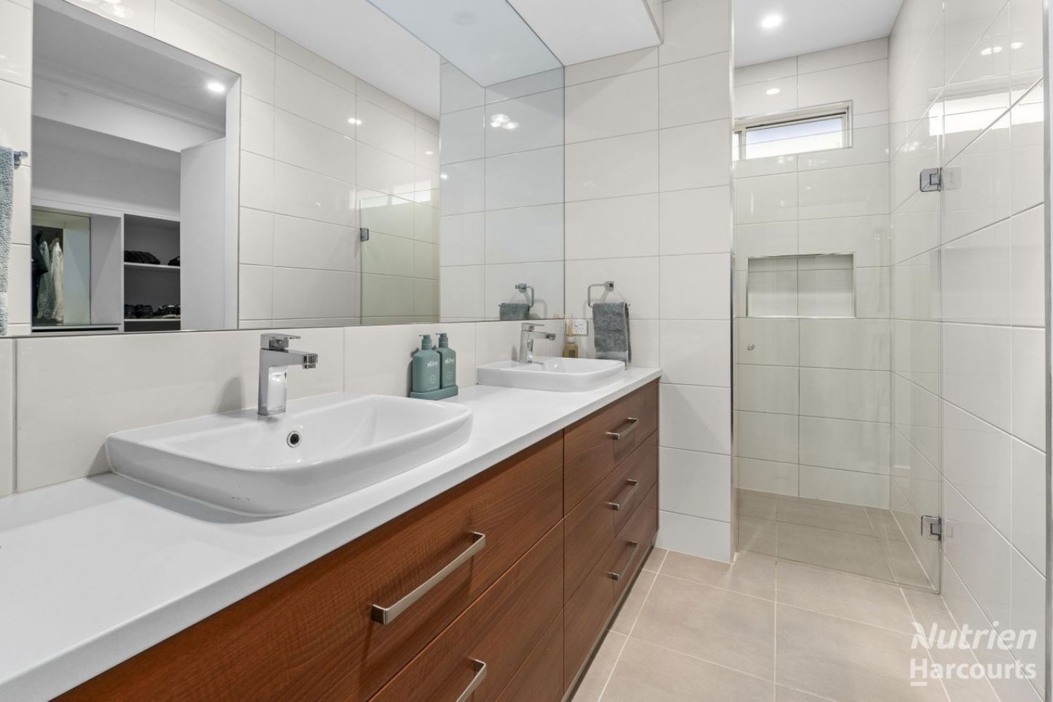 The master suite offers true indulgence with its walk-in robe, dual vanity ensuite, and private water views.