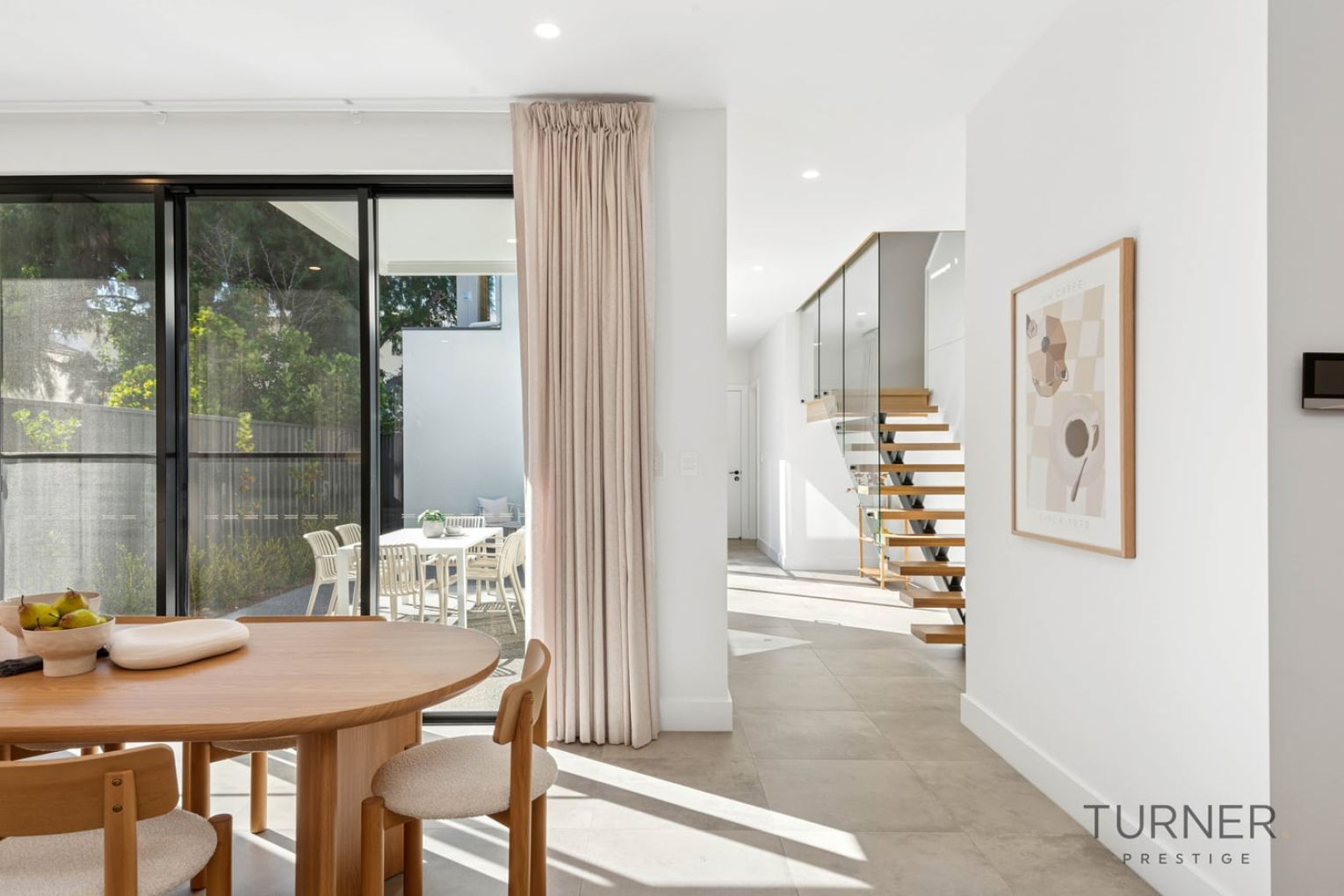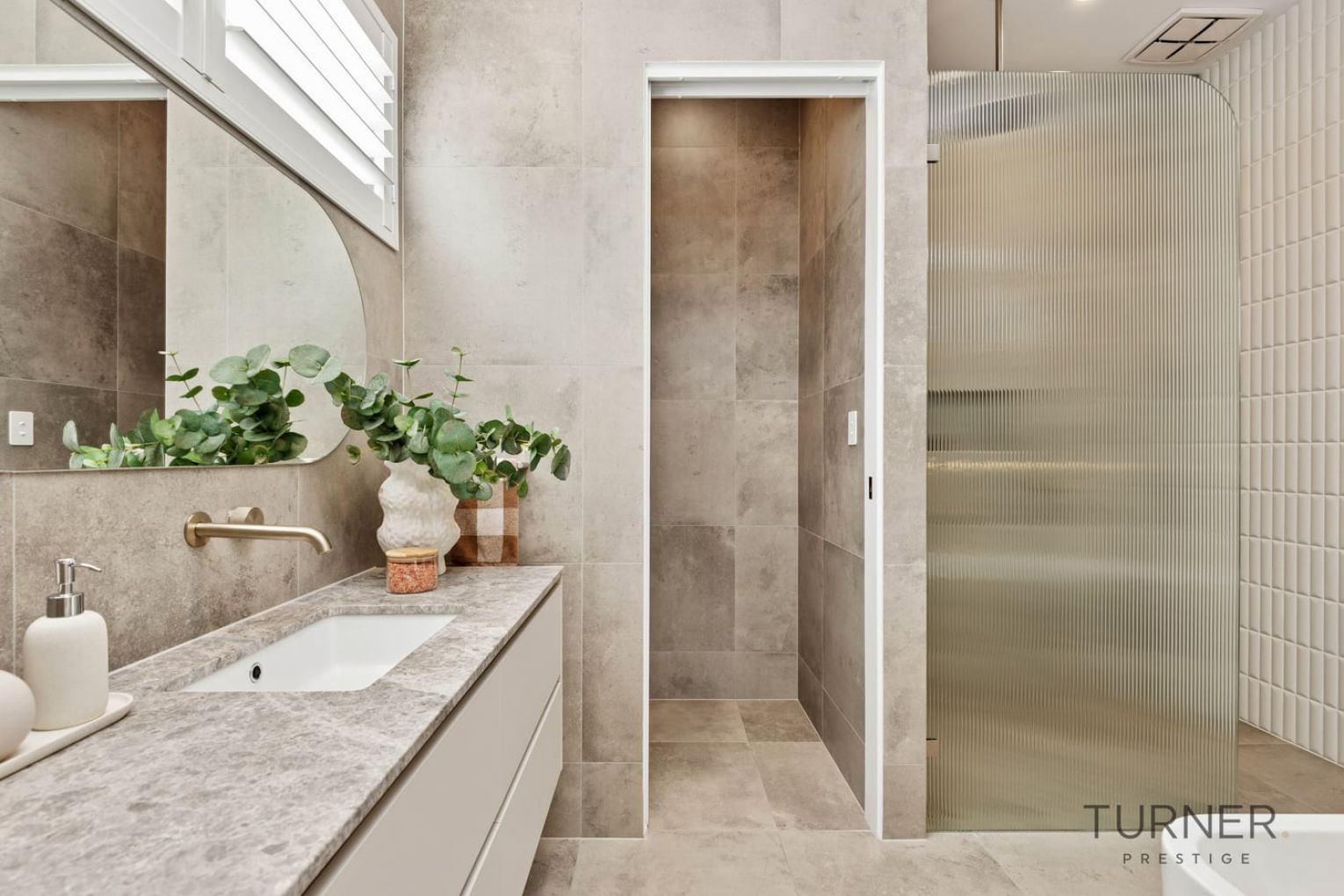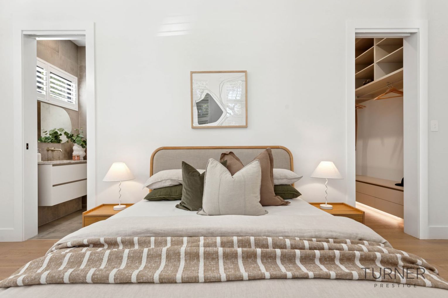 The ground floor comprises of a beautifully appointed master bedroom with coffered ceilings, along with a luxe master ensuite with heated floor and walk-in robe.
