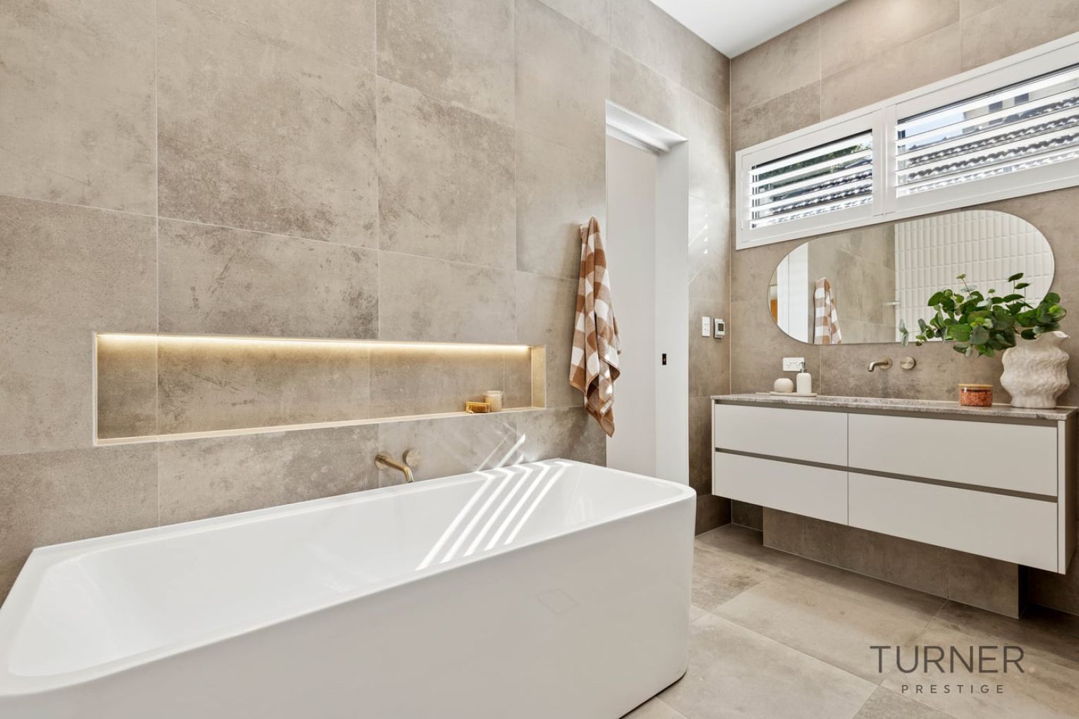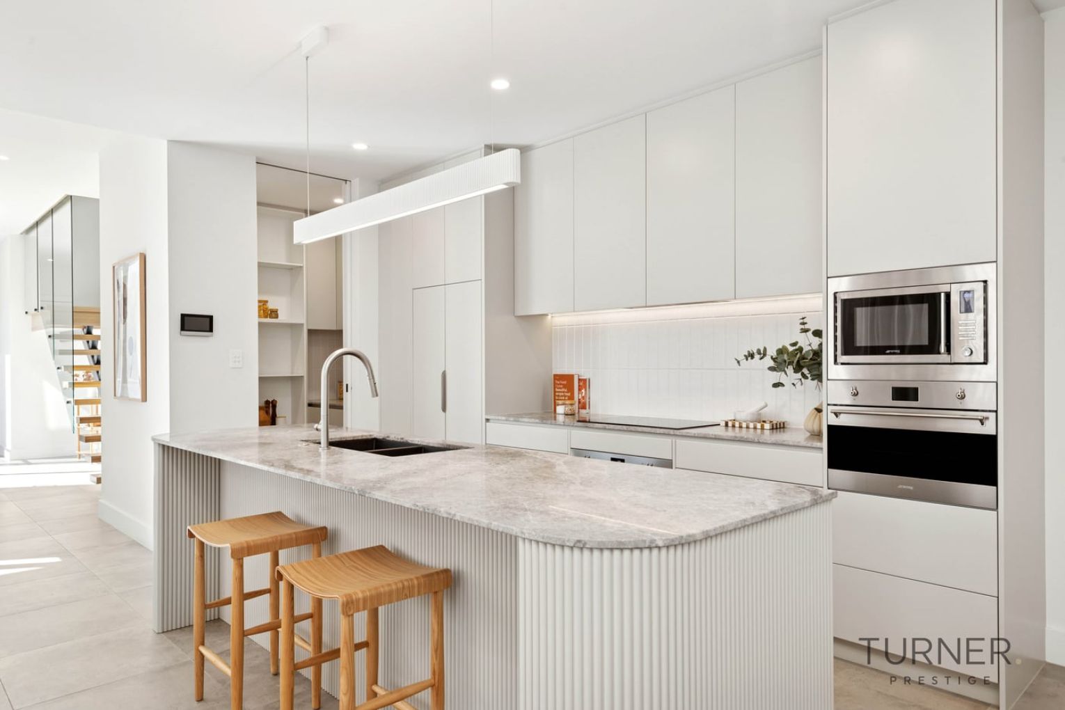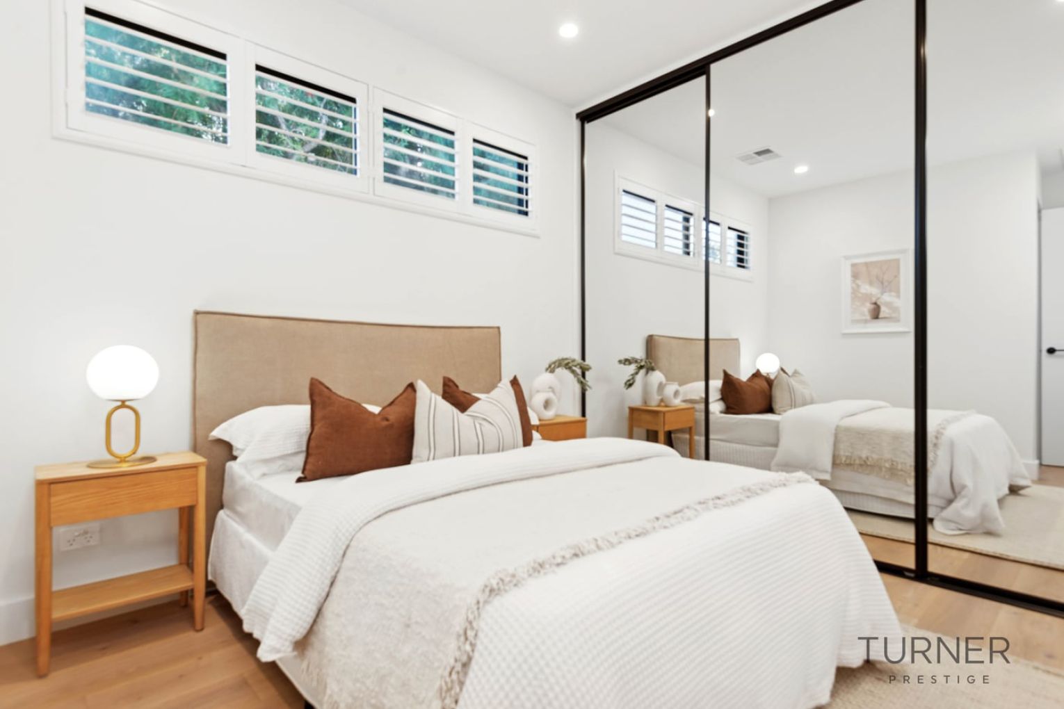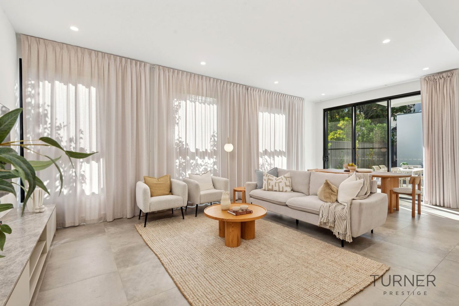 The ground floor comprises of a beautifully appointed master bedroom with coffered ceilings, along with a luxe master ensuite with heated floor and walk-in robe.