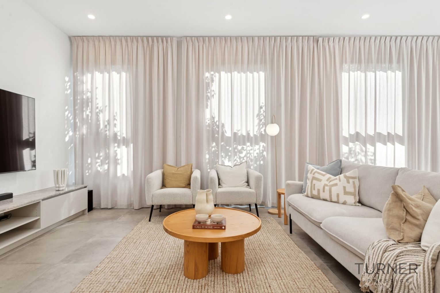 Upstairs you will find a spacious sanctuary which includes a theatre room, complete with premium television and sound system, two bedrooms and two bathrooms. The private terraced balcony provides a perfect space for relaxation whilst you enjoy the fresh sea air.