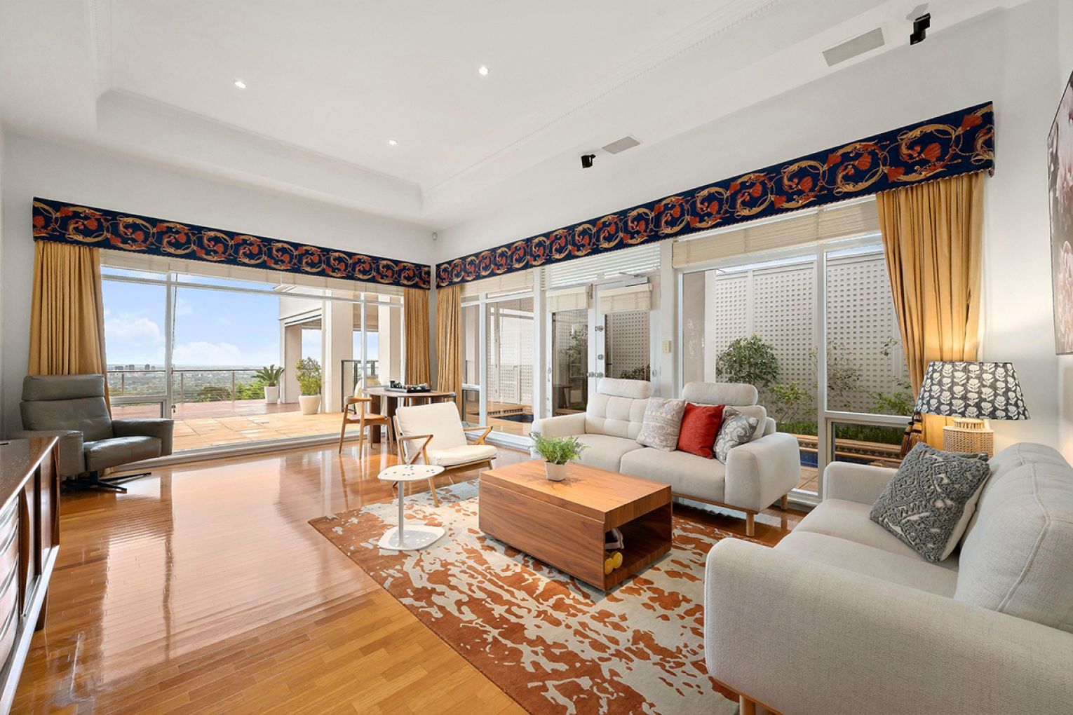 An expansive terrace extending across elevated decking commands the city panorama, while the undercover alfresco, lap pool, and tranquil garden patio provide multiple spaces to dine, unwind, and celebrate life’s finest moments.