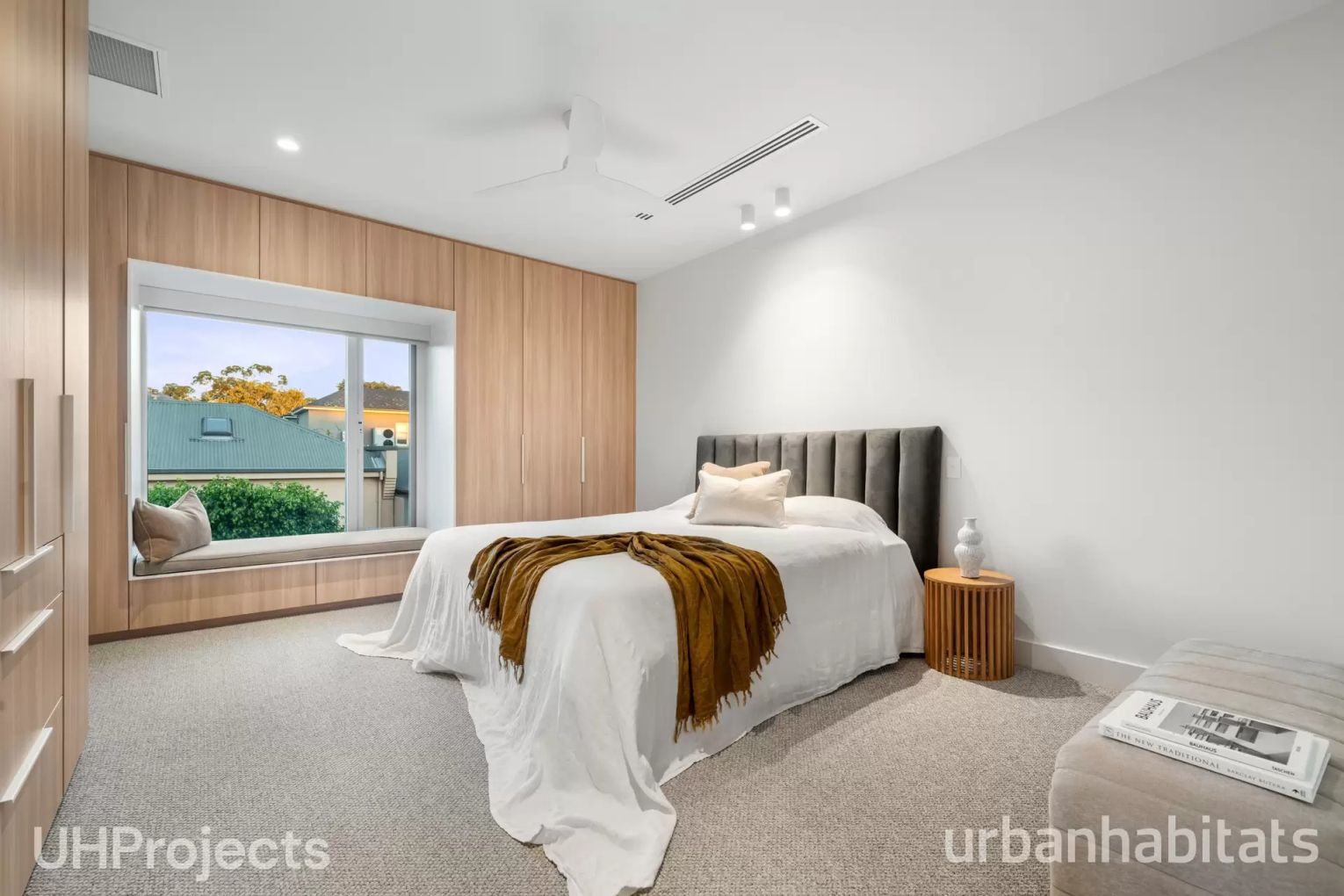 Enviously located in a private and secluded pocket of exclusive and ever popular North Adelaide, is a supremely elegant and ultra sophisticated modern architectural masterpiece. Brilliantly brought forth into reality by the celebrated creative minds of award-winning custom builder Urban Habitats, the home seamlessly blends chic interiors and high quality materials with functionality, creating an immersive living experience that disconnects its occupants from the daily stresses of urban life in this inner-city sanctum.