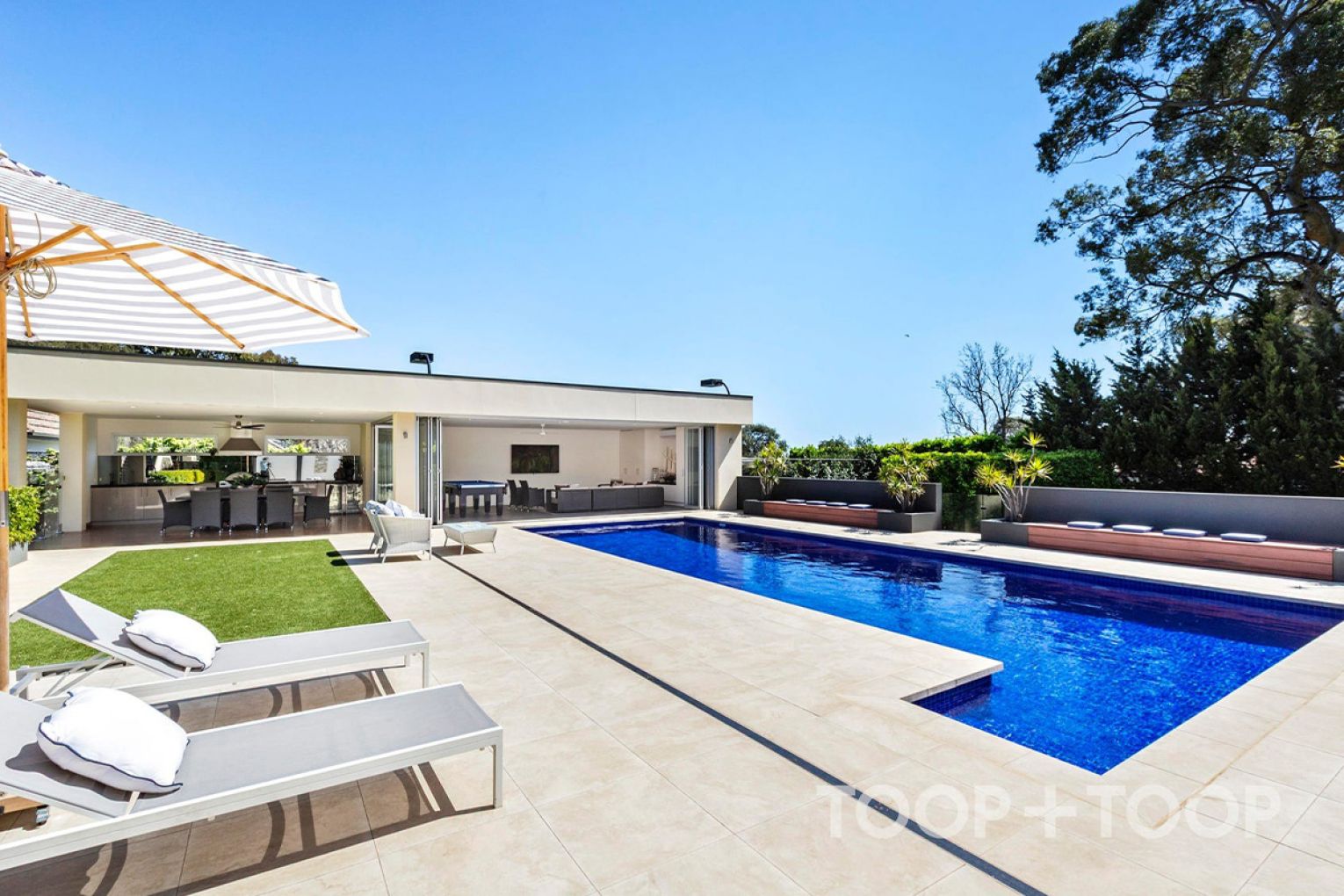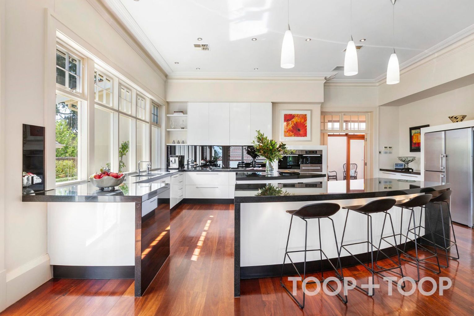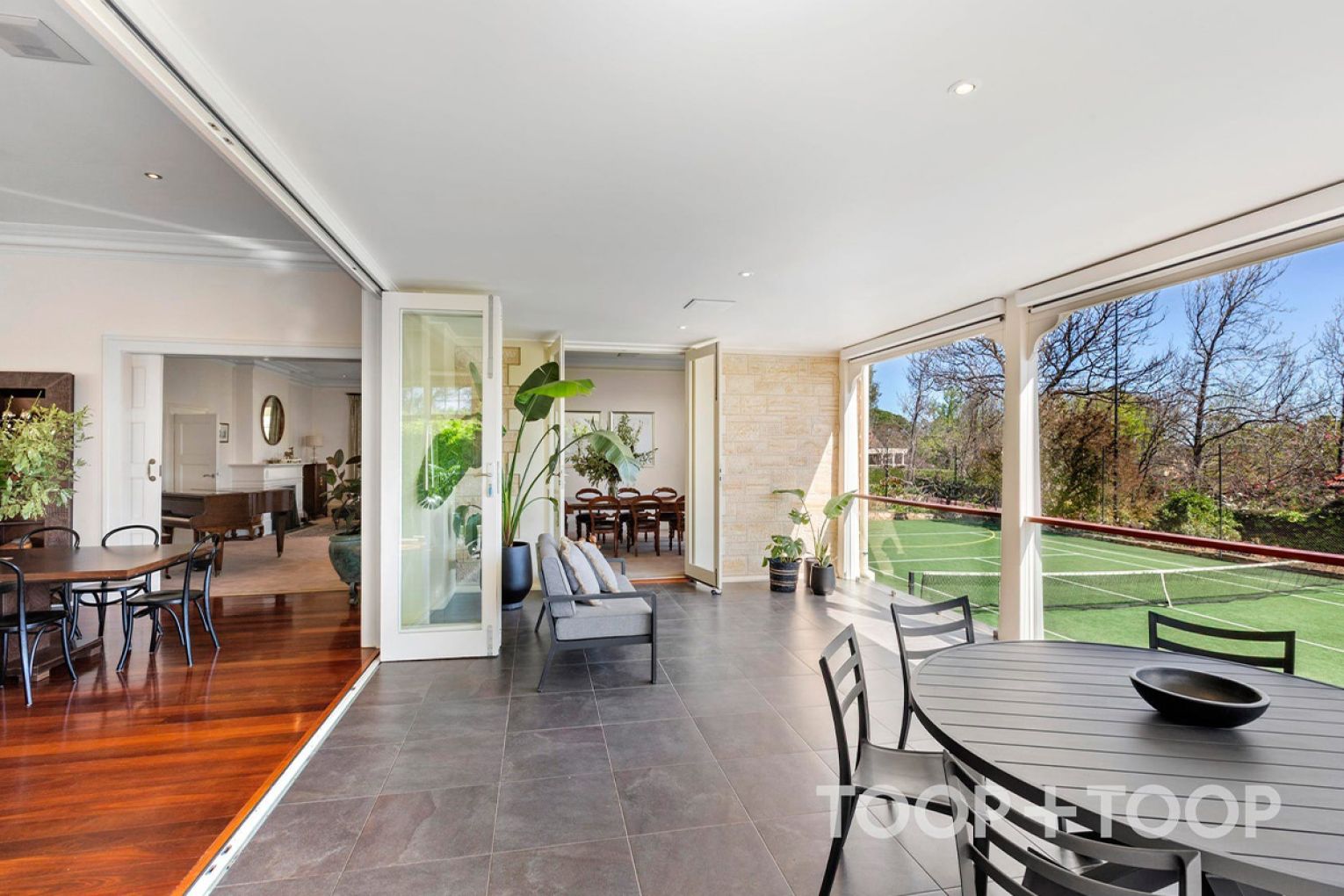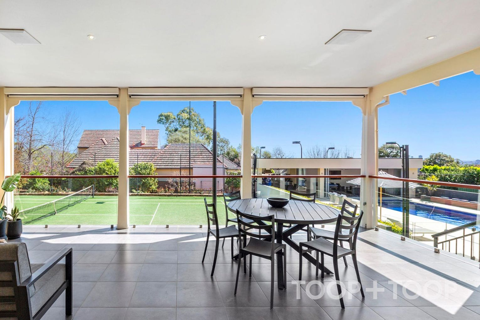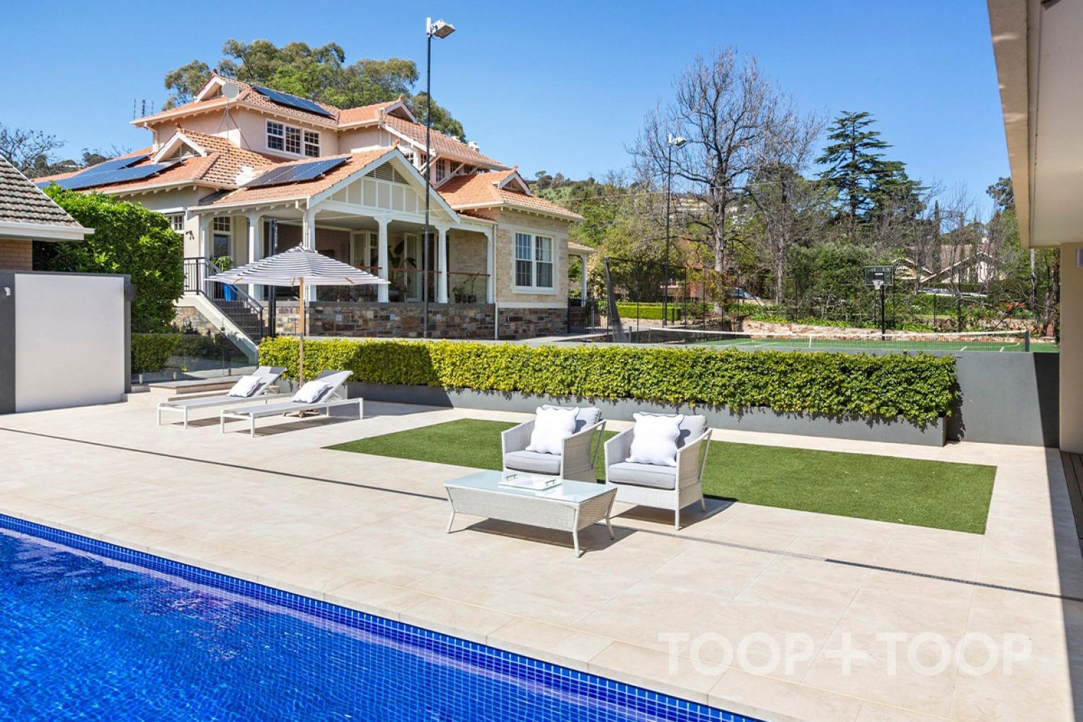 Situated on sweeping park like grounds approximating 3,659sqm adjacent Seymour College, its expansive floorplan offers versatile family living on a grand scale, panoramic views across Adelaide, and wow-factor resort style outdoor entertaining including a north/south tennis court, pool and pavilion.