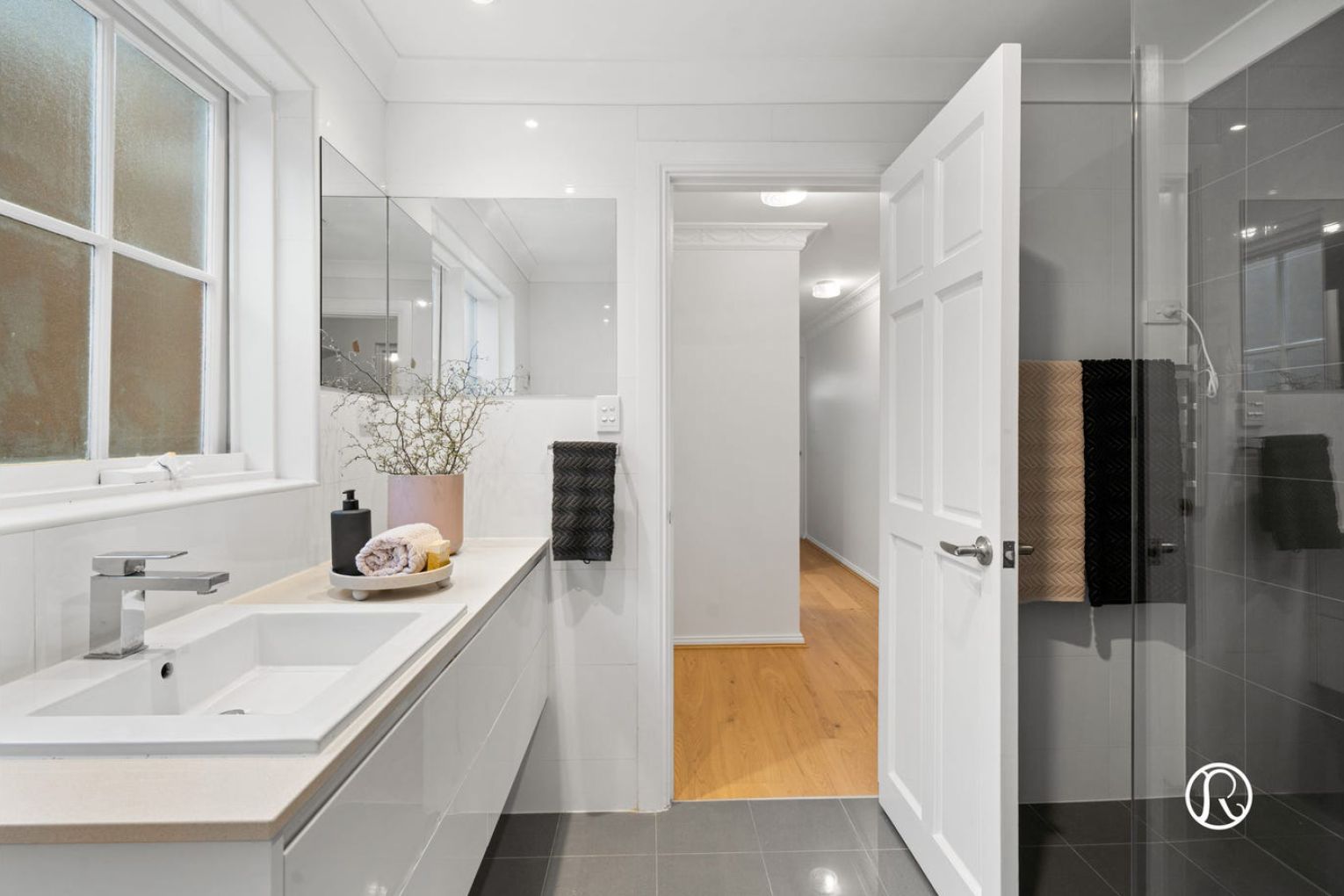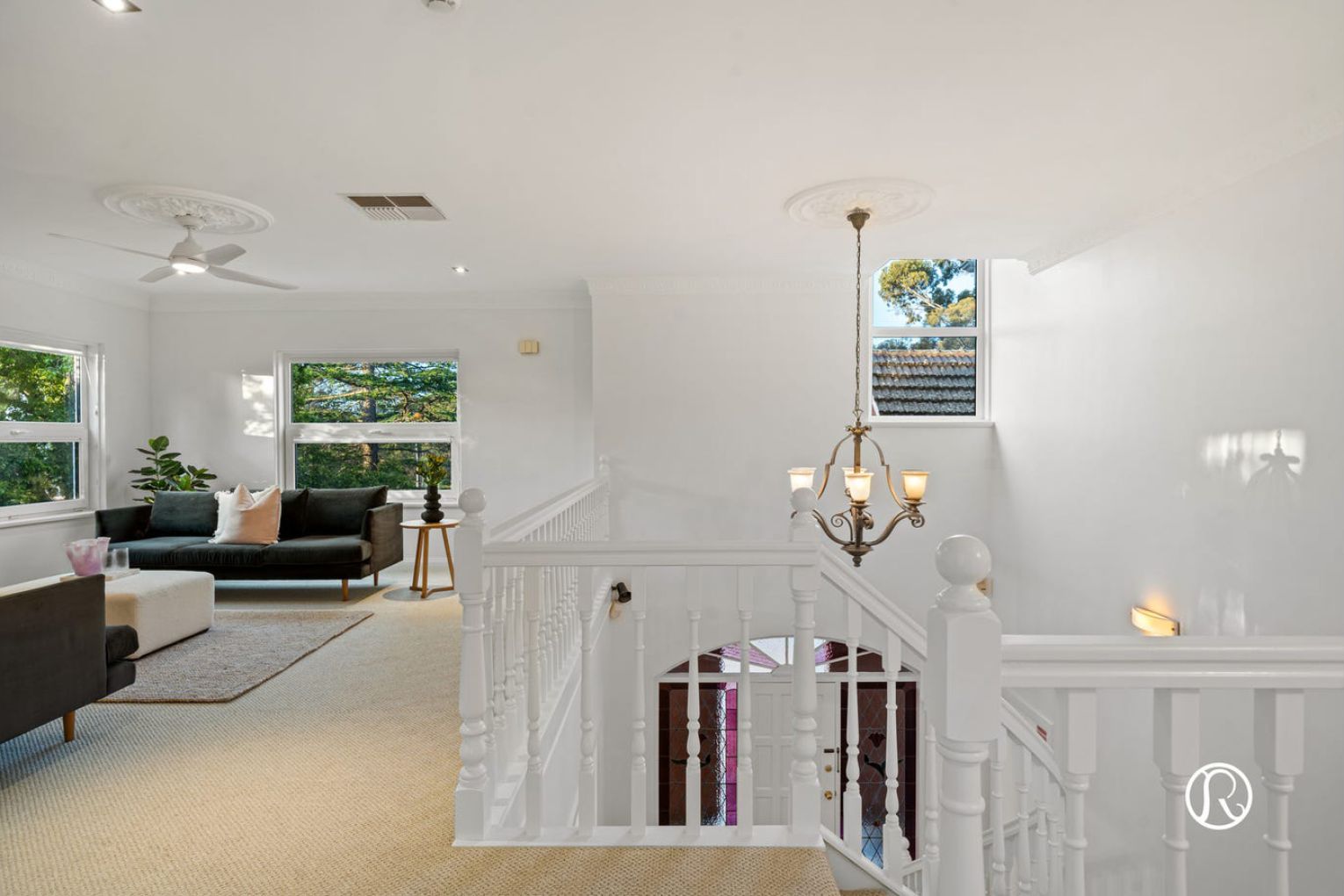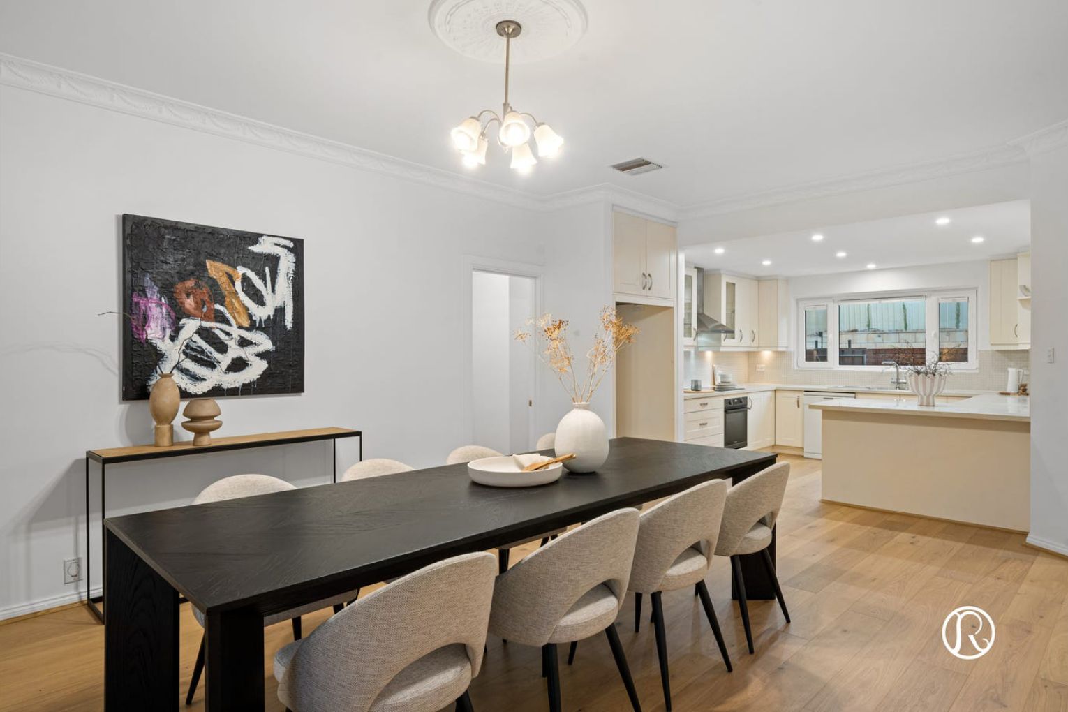 Step inside to discover a world of space and possibility, where you are greeted by a beautiful curved staircase and large open void. Your thoughtfully refreshed interiors showcase lovely timber flooring, fresh neutral tones and elegant period details including ornate ceiling features that speak to the home’s enduring charm. Natural light pours through generous European double glazed windows, creating an inviting atmosphere throughout.