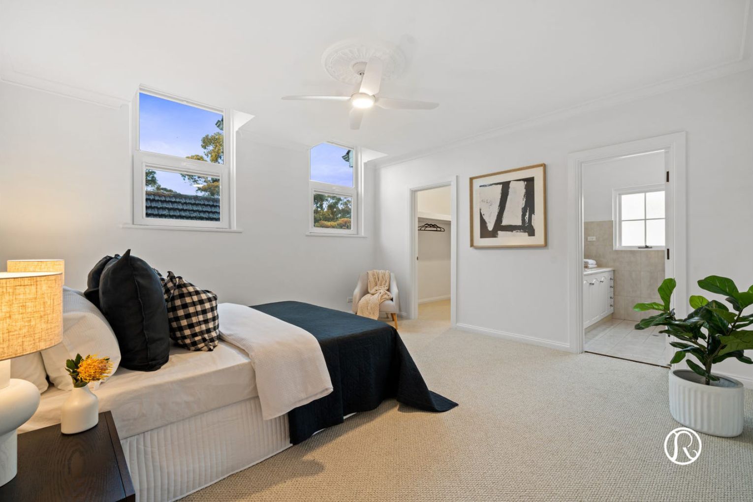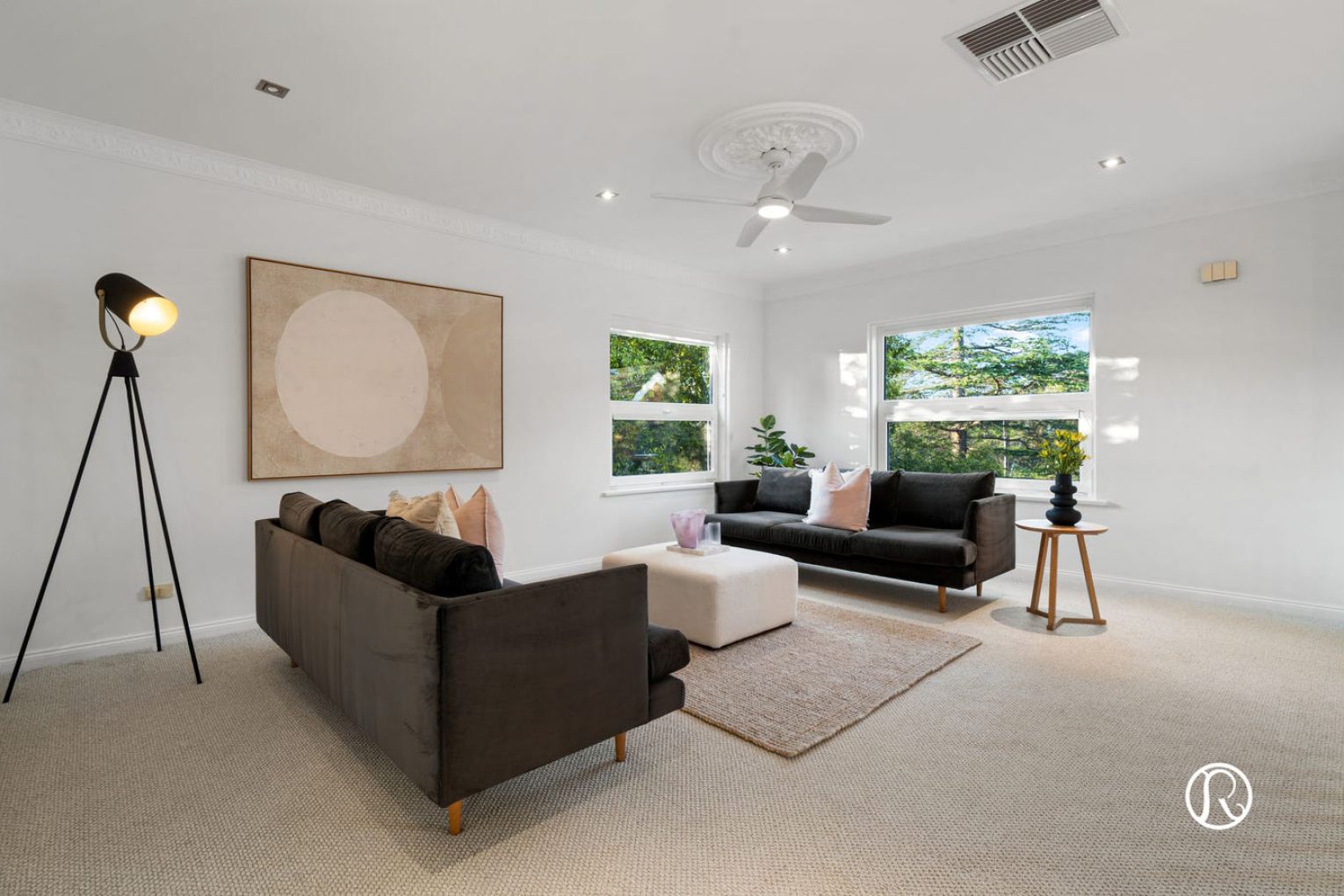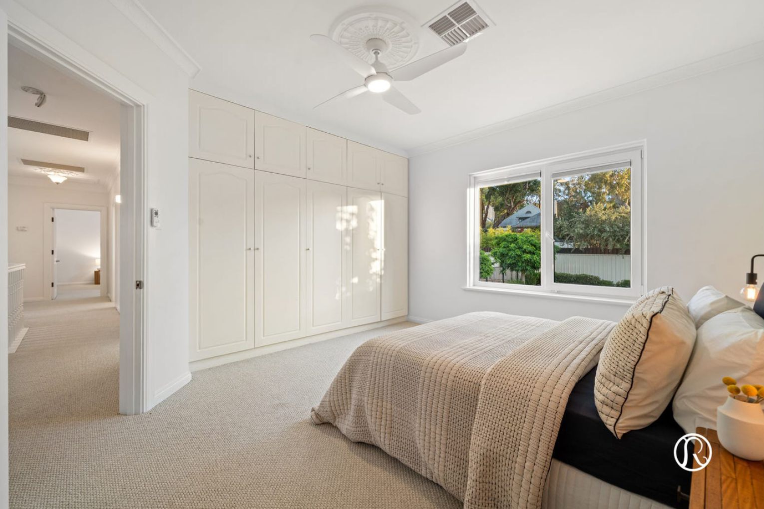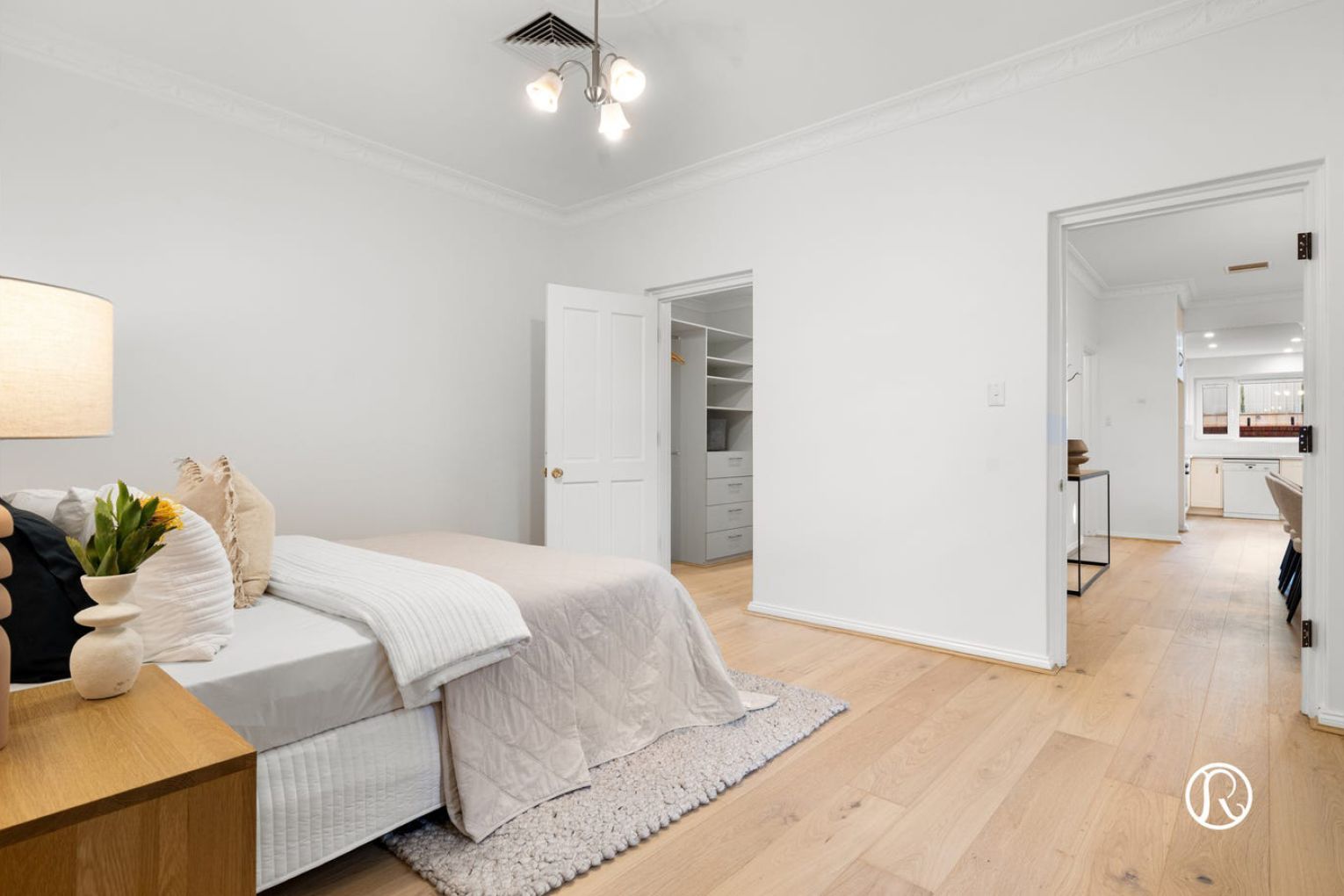 Step inside to discover a world of space and possibility, where you are greeted by a beautiful curved staircase and large open void. Your thoughtfully refreshed interiors showcase lovely timber flooring, fresh neutral tones and elegant period details including ornate ceiling features that speak to the home’s enduring charm. Natural light pours through generous European double glazed windows, creating an inviting atmosphere throughout.