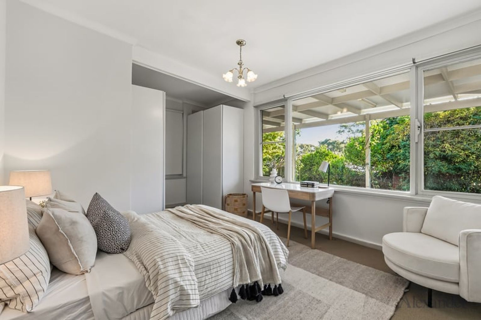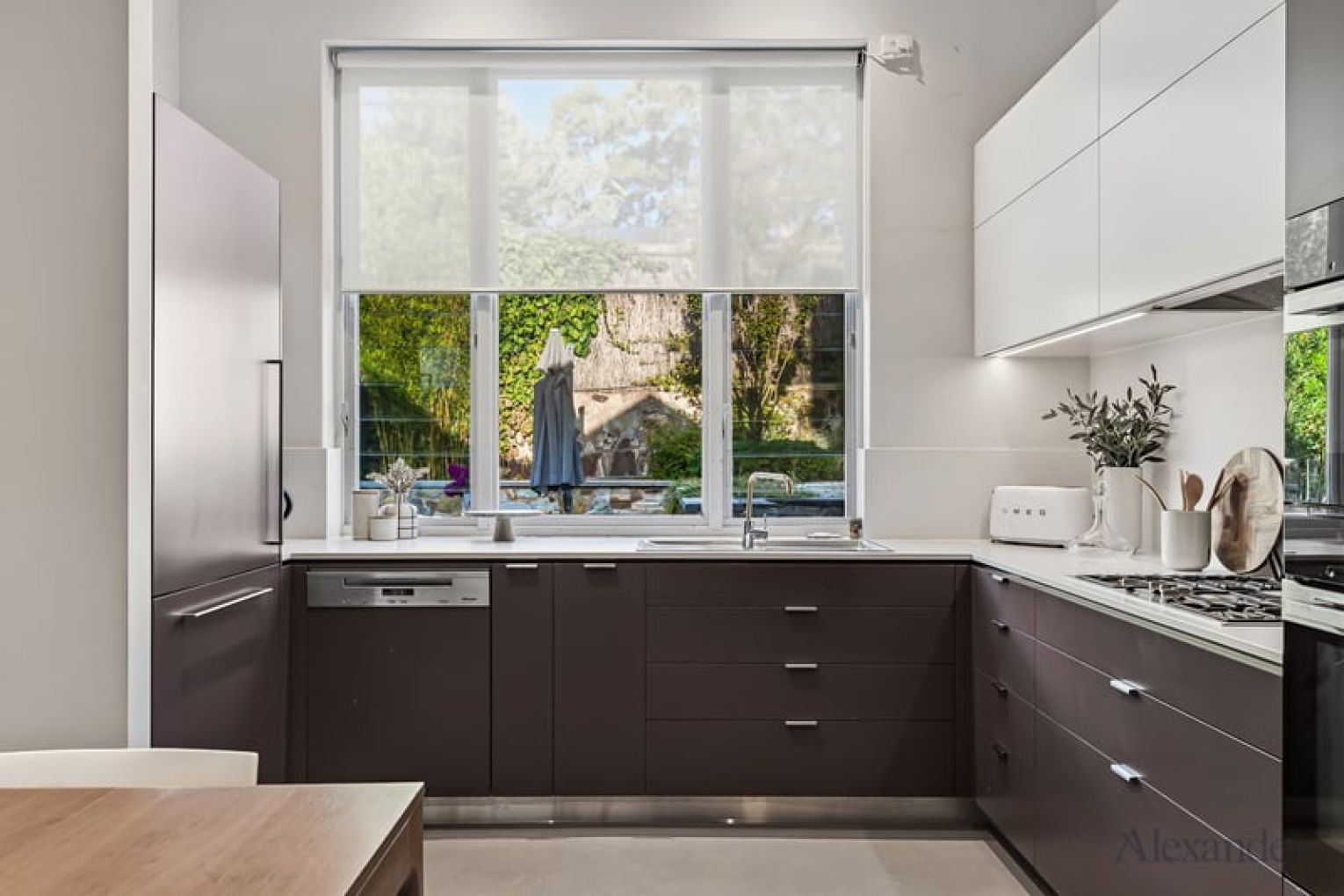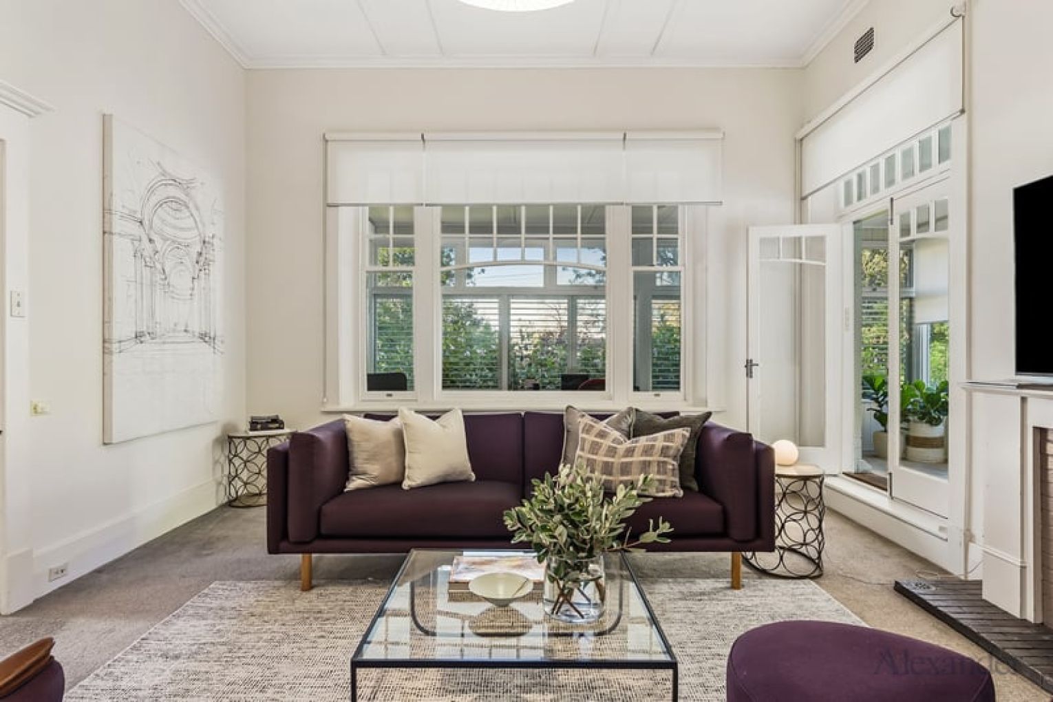 A charming decked verandah welcomes you on arrival, an idyllic setting for your morning coffee, or evening aperitivo. Beyond, a grand light-filled entrance reveals soaring ceilings, chandelier, cloakroom, and plush carpeting that flows through the formal living areas and bedrooms.