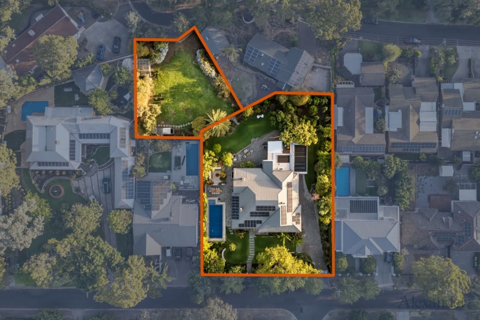Sunbank Homestead, on 2185 sqm, is a distinguished residence of rare grace and presence, with an adjoining allotment of 751 sqm of prime residential land at 9 Ilfracombe Drive, Wattle Park.