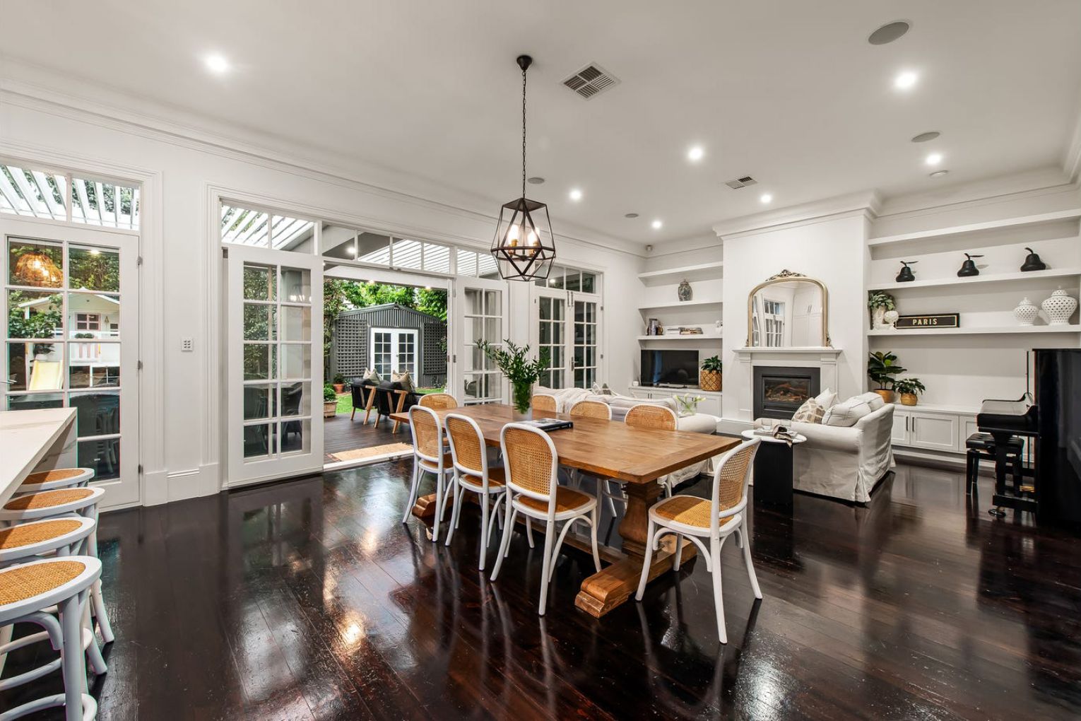 And so the dramatic dark Baltic pine floors and impossibly high ceilings that greet you donât end until this light-drenched home spills effortlessly through French doors to the crowd-pleasing Eclipse Louvres vergola at its sunny rear.