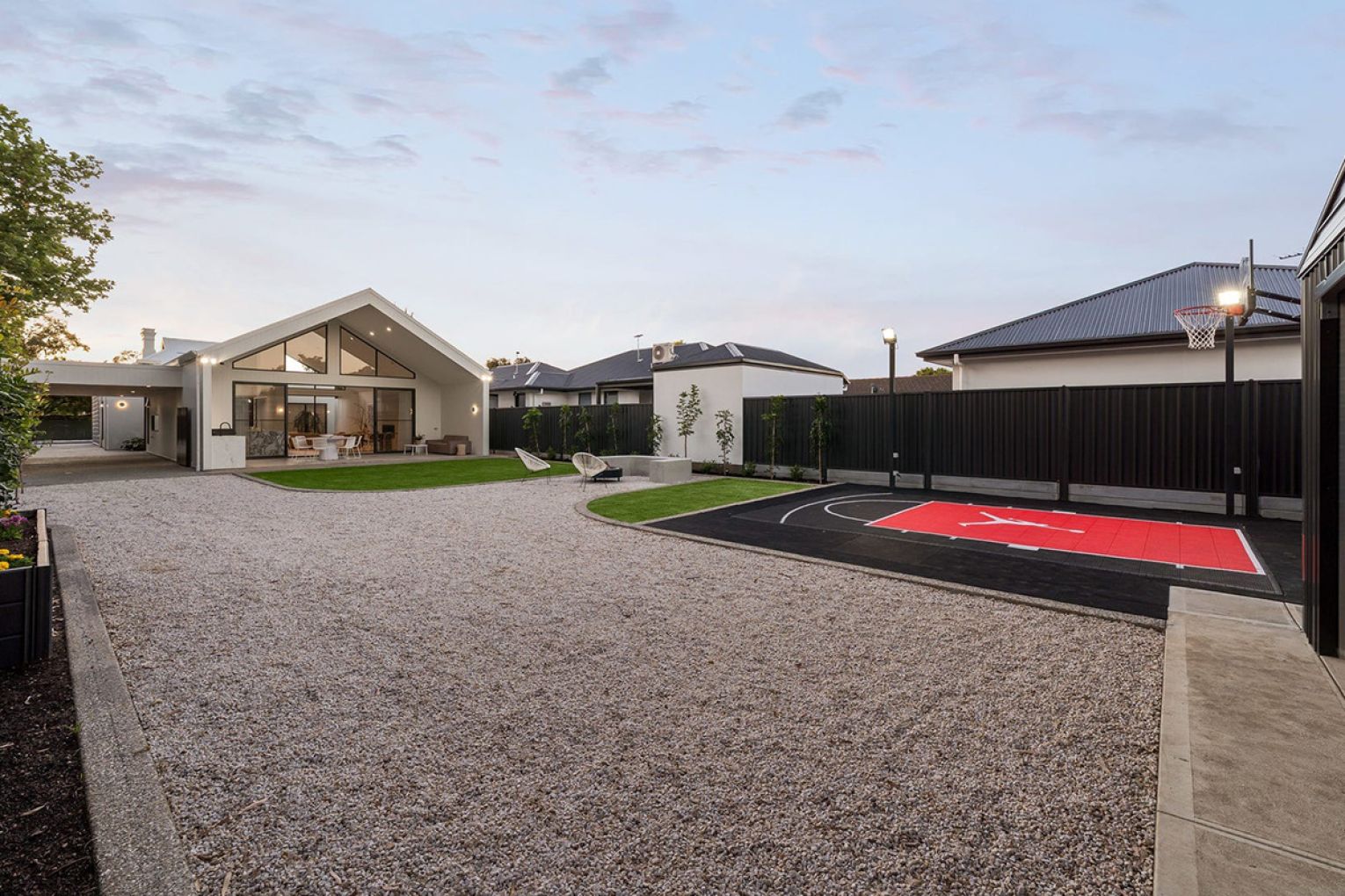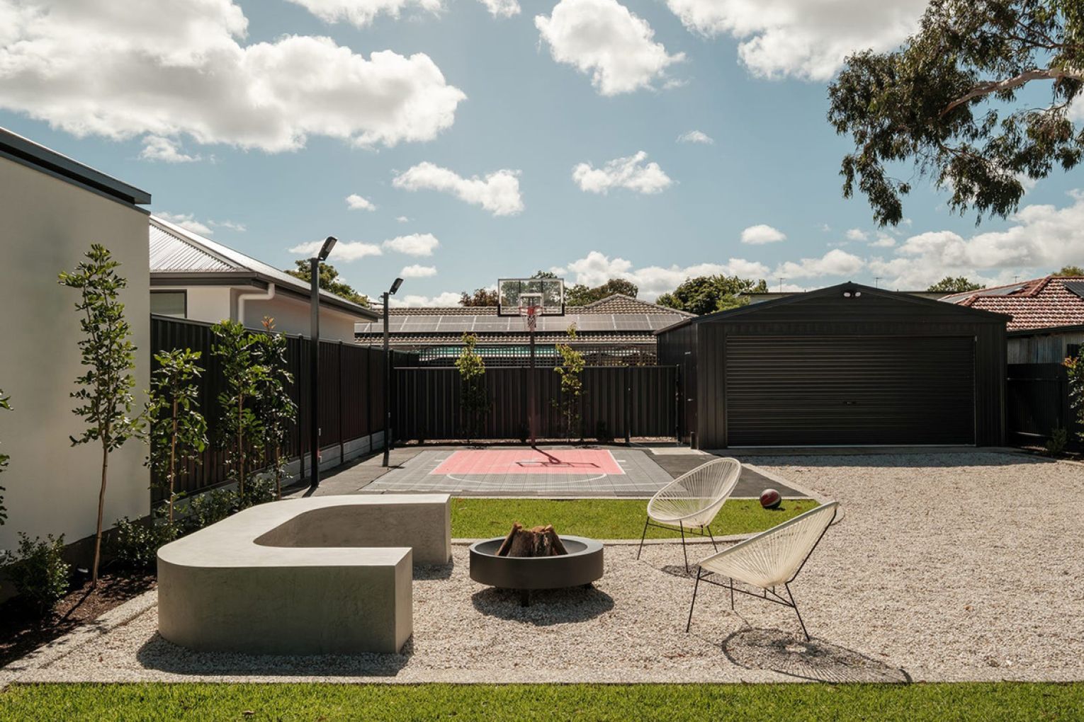 Beyond the alfresco terrace a feature firepit zone, sports court, and lush landscape-designed gardens celebrate resort-style relaxation and family enjoyment.