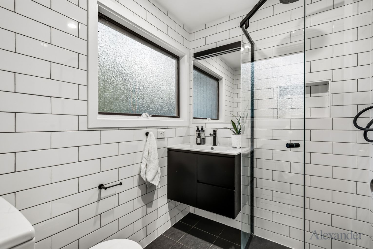 Upstairs, three generously sized bedrooms-each with built-in robes-provide the perfect retreat for younger family members. A newly updated bathroom with floor-to-ceiling subway tiles and a floating vanity, plus a practical hallway bench with storage, completes this level.