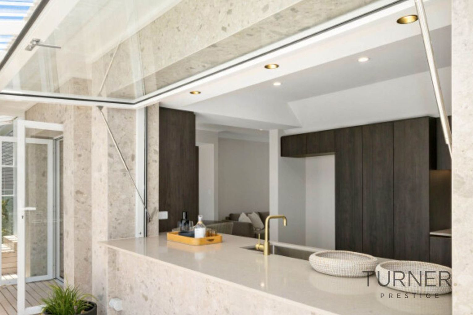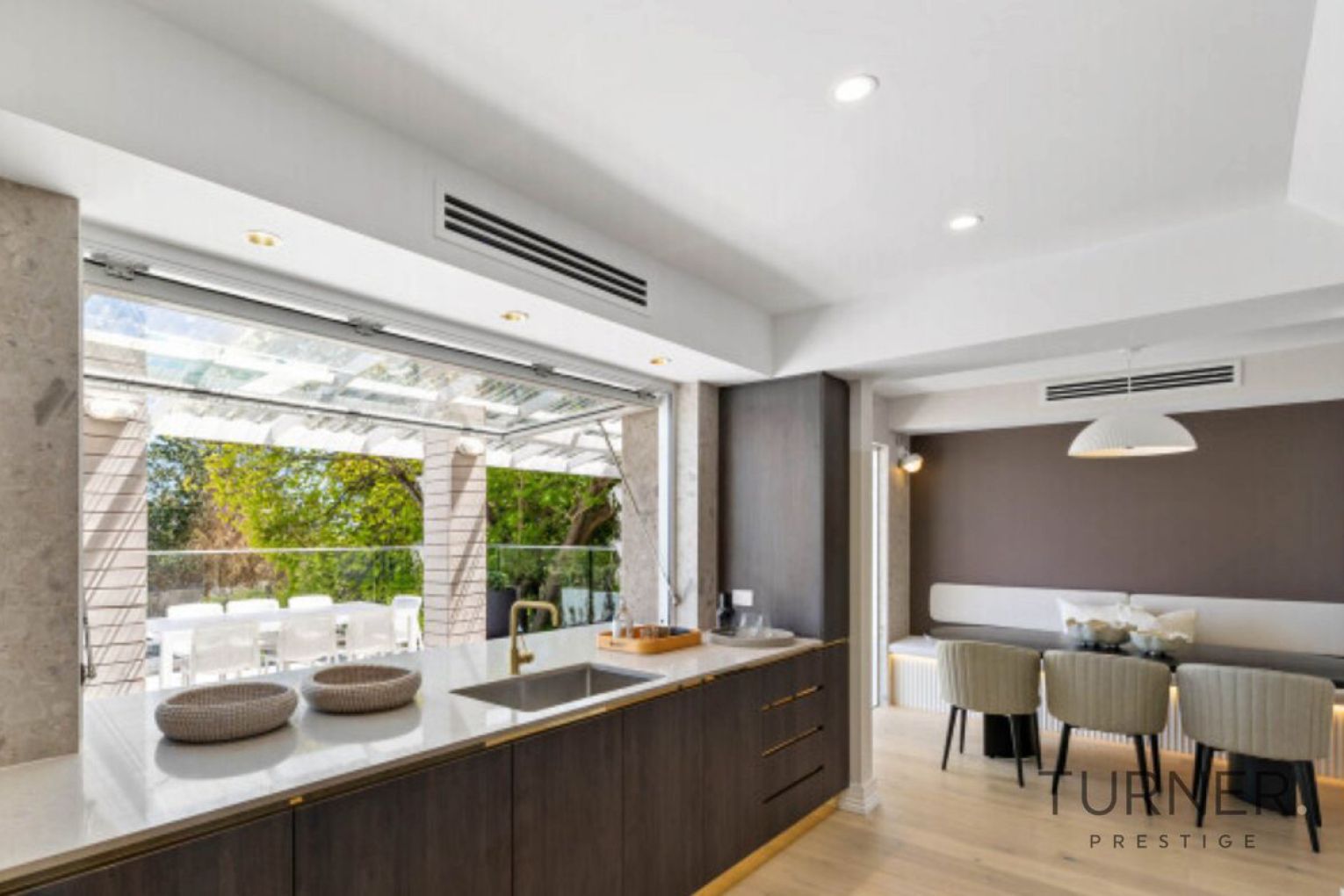 The stunning kitchen is the heart of the home, flooded with light and gorgeous views of the rear deck and pool area. Featuring a gas stove top, integrated dishwasher, quality fixtures and finishes, and a pantry.