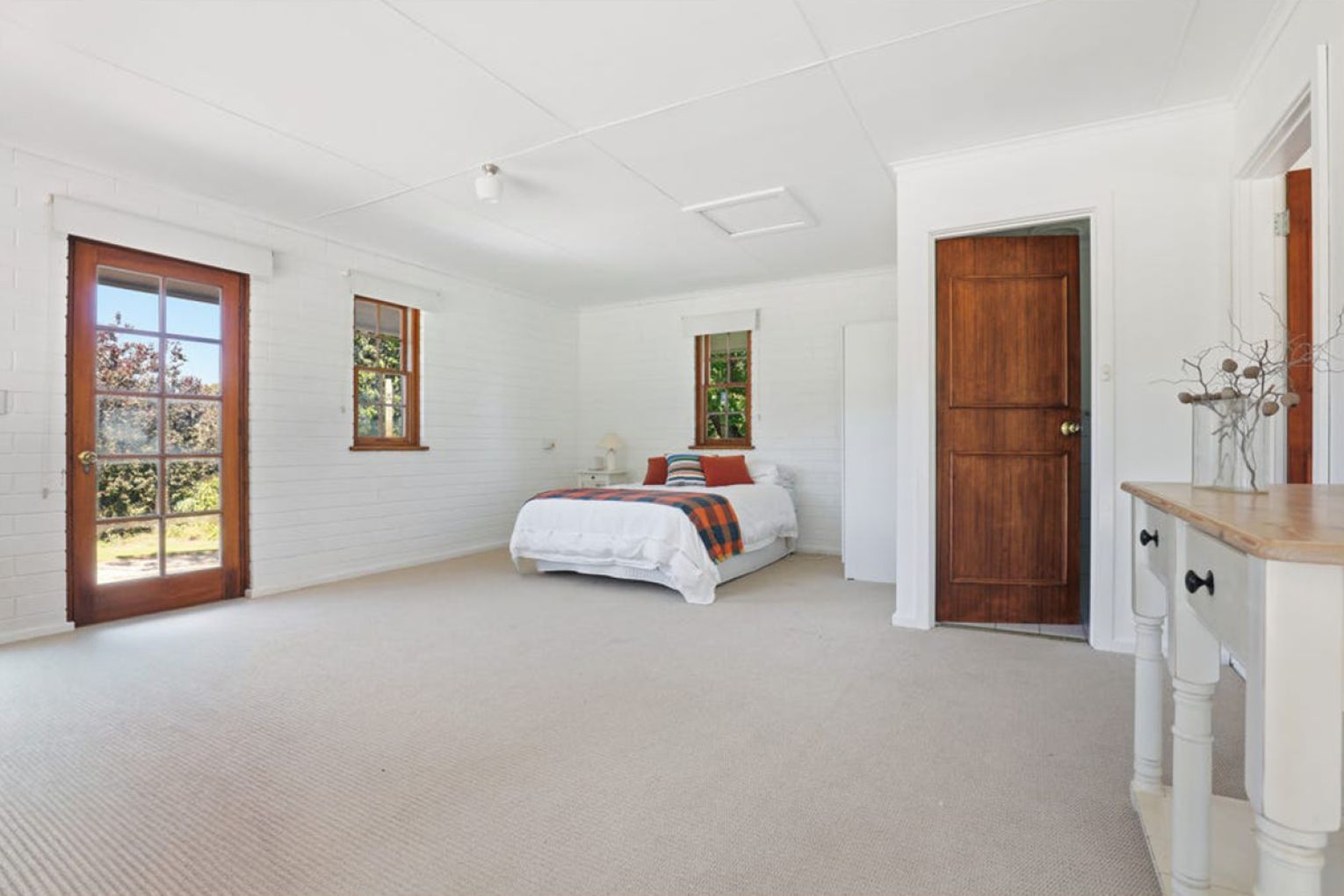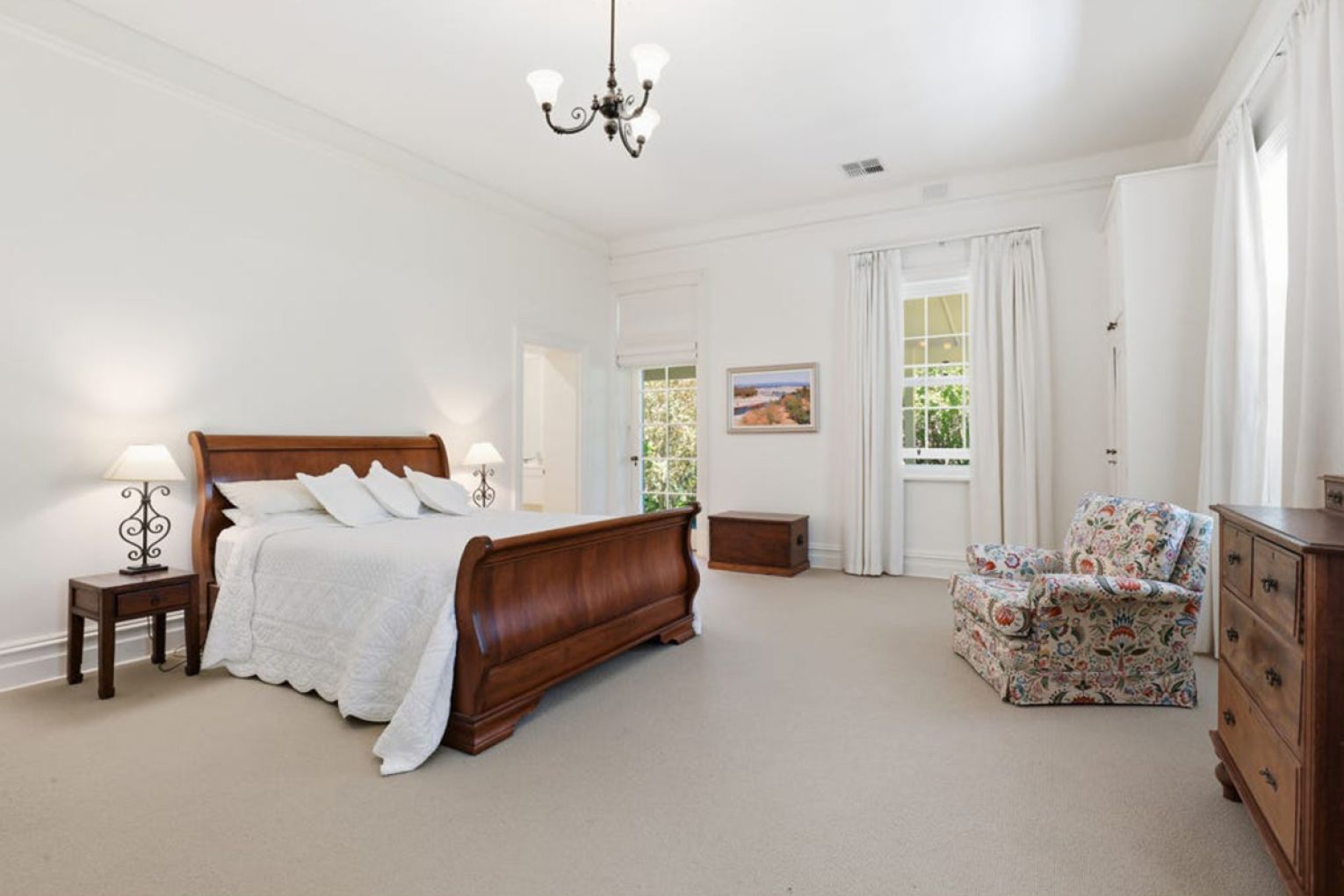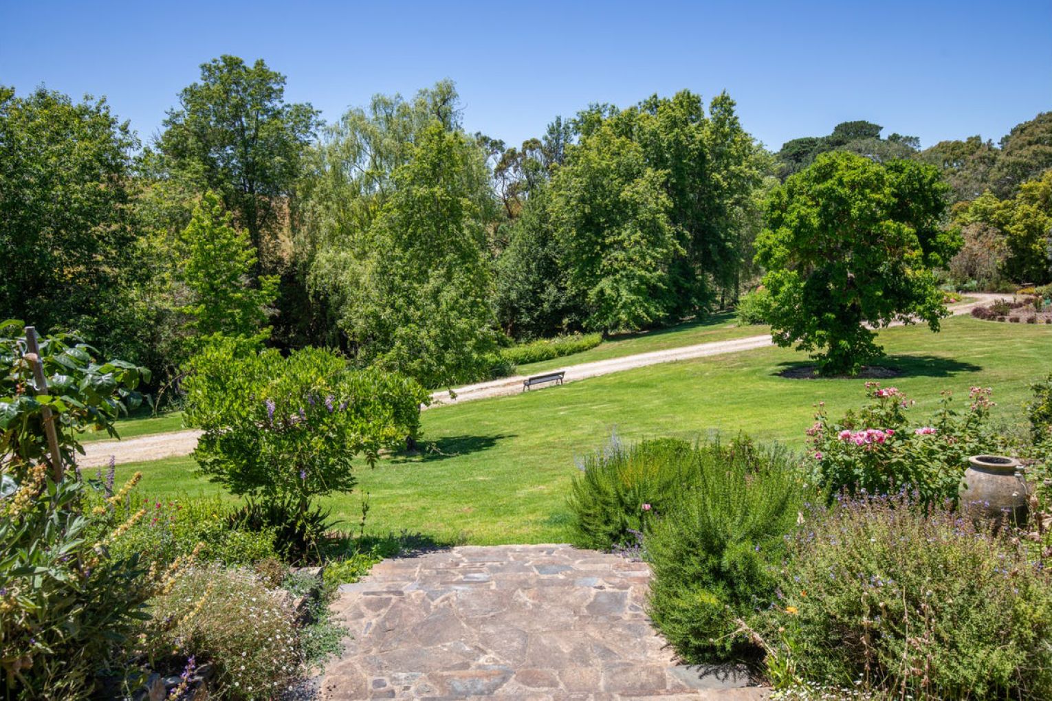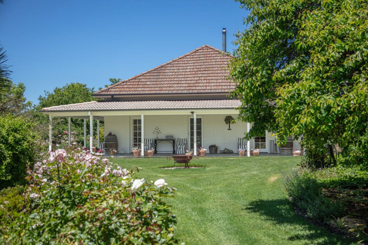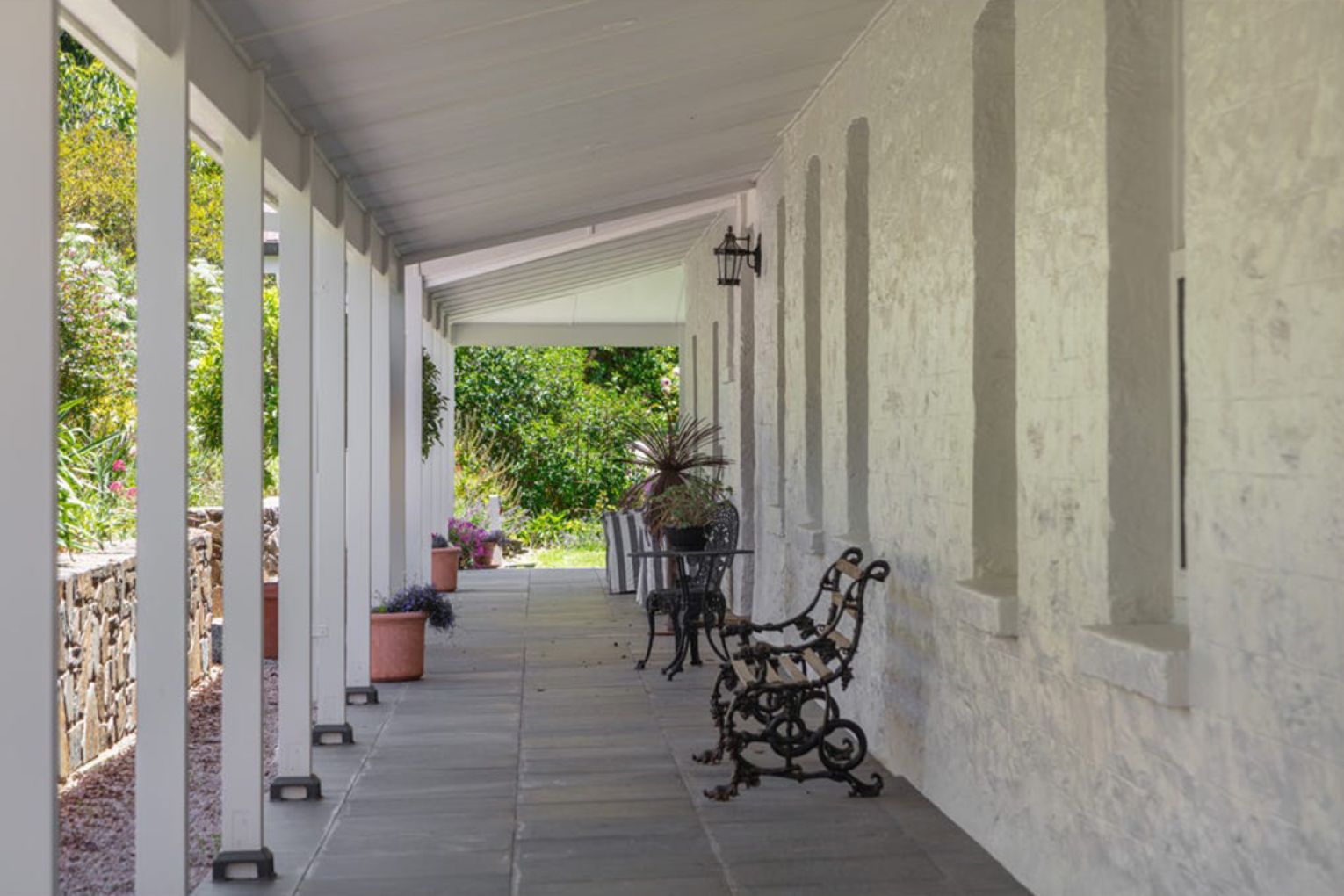 And then… there’s the homestead. A quintessential Australian residence, whitewashed and timeless, wrapped in verandahs that spill out to park-like irrigated gardens – 8 to 10 acres of open lawns, curated plantings by the renowned local bontanist Mrs Fletcher, and a sense of calm that settles over you from the moment you arrive.