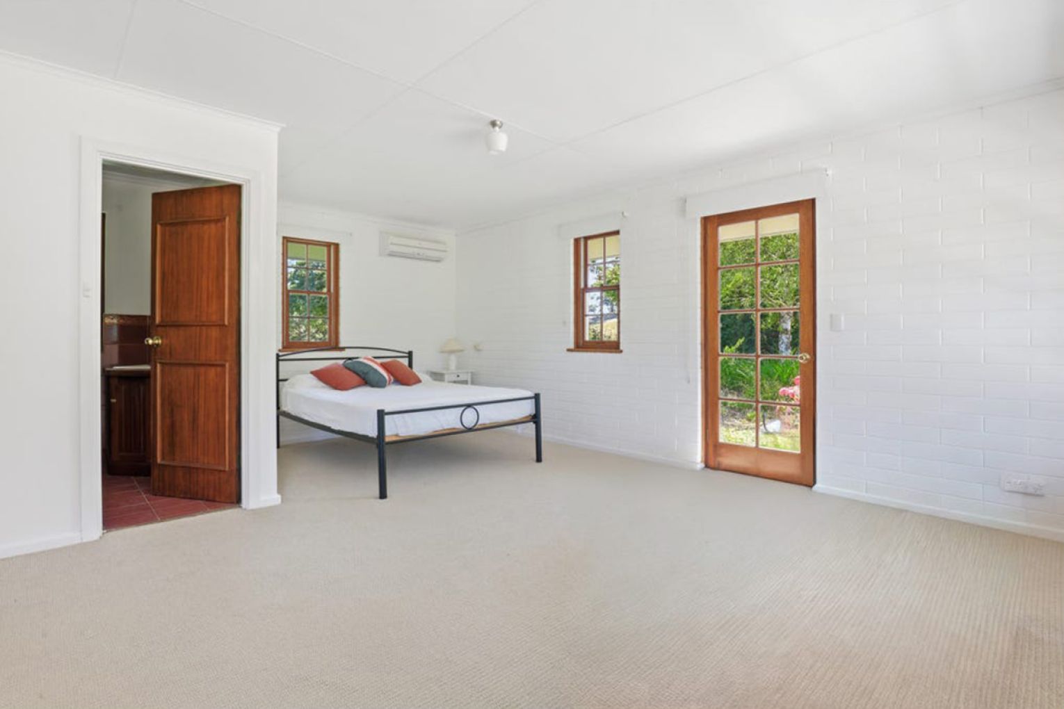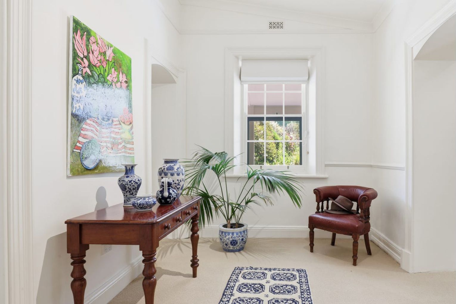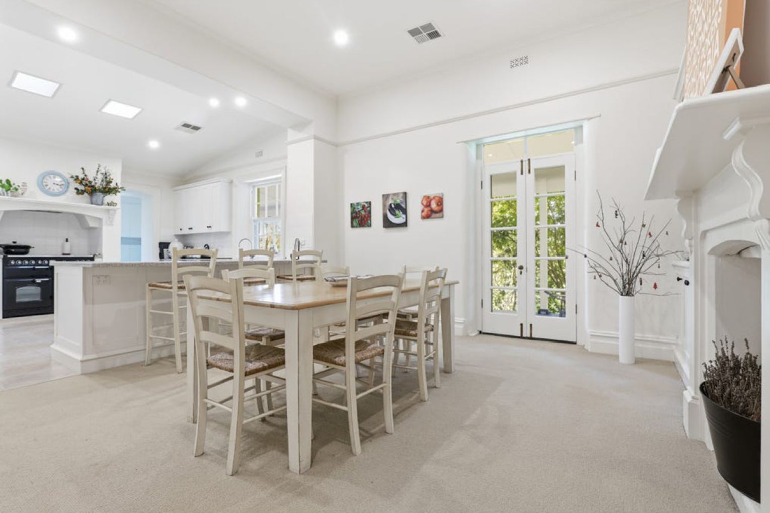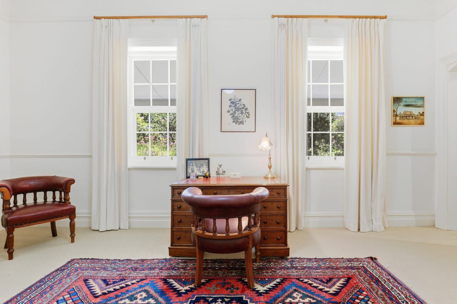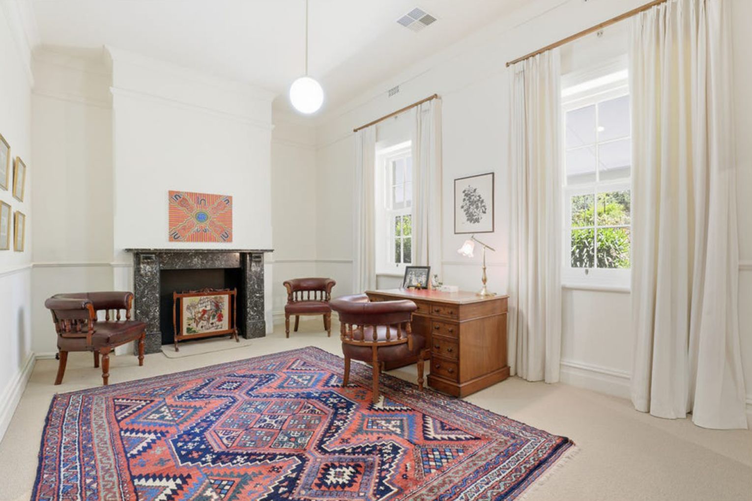 The rooms unfold with warmth and restraint: a generous lounge with feature marble fire surround and slow combustion fire, formal dining, entry parlour, powder room and two master suites with ensuites and flexibility for a third – currently utilised as an office.