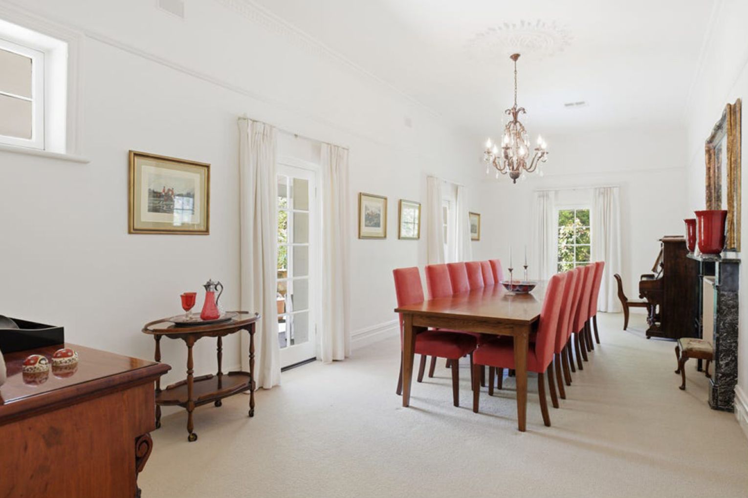 • Formal dining with marble fire surround and three sets of doors opening out to the wrap around verandah