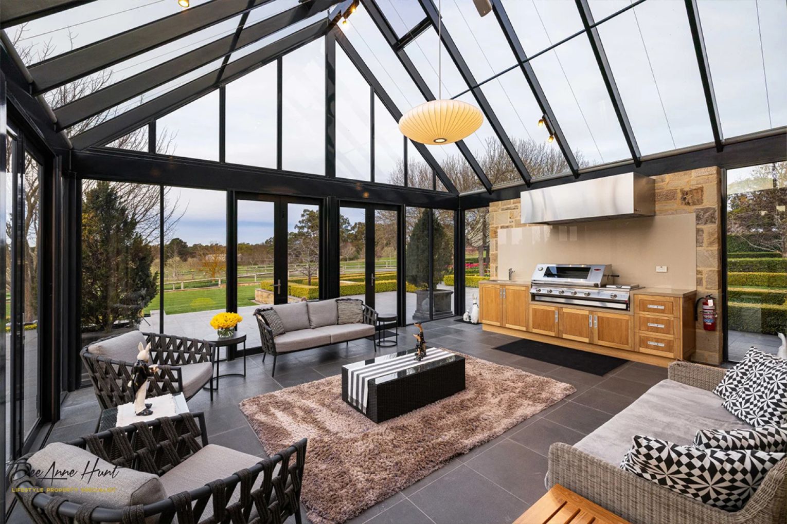 Vast solar capacity ensures welcome efficiency, while garaging prestige includes a six-bay high-clearance shed and secure double parking beneath the main roof – added indulgence for the serious collector.