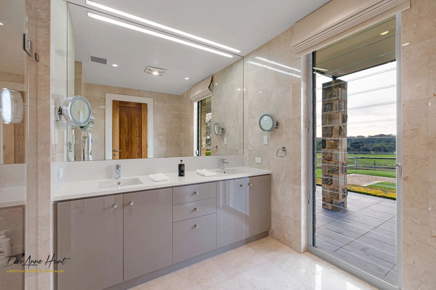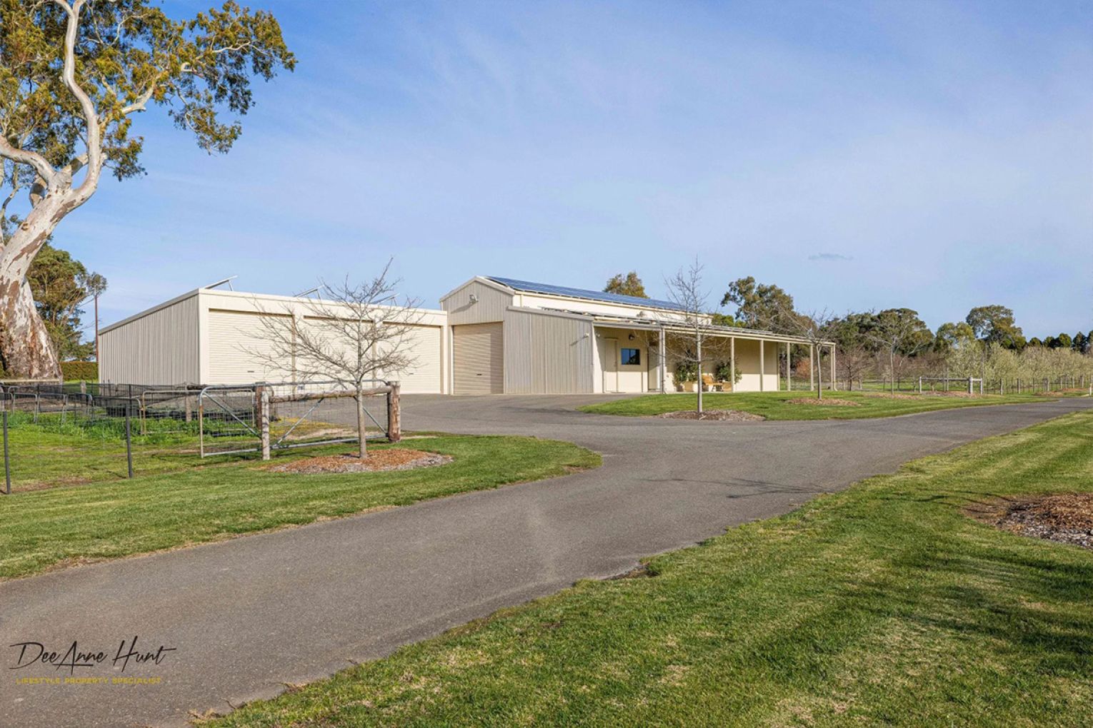 Around you, the estate is a world unto itself: productive softly undulating paddocks, century old gums, a fully enclosed food garden, orchards, chicken pen, mature Blue Gum plantation, and two horse stables putting sustainability front of mind.