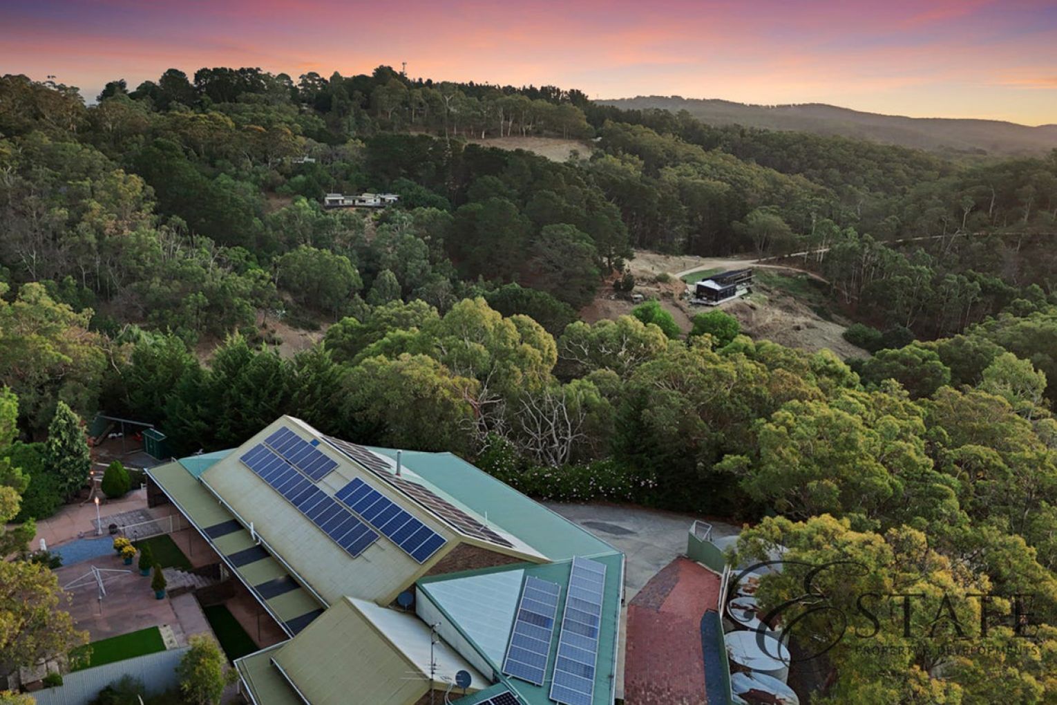 Commanding sweeping views across rolling hills to the glittering skyline of Adelaide, this architecturally designed residence offers an extraordinary combination of privacy, self-sufficiency and understated luxury – just minutes from the CBD.