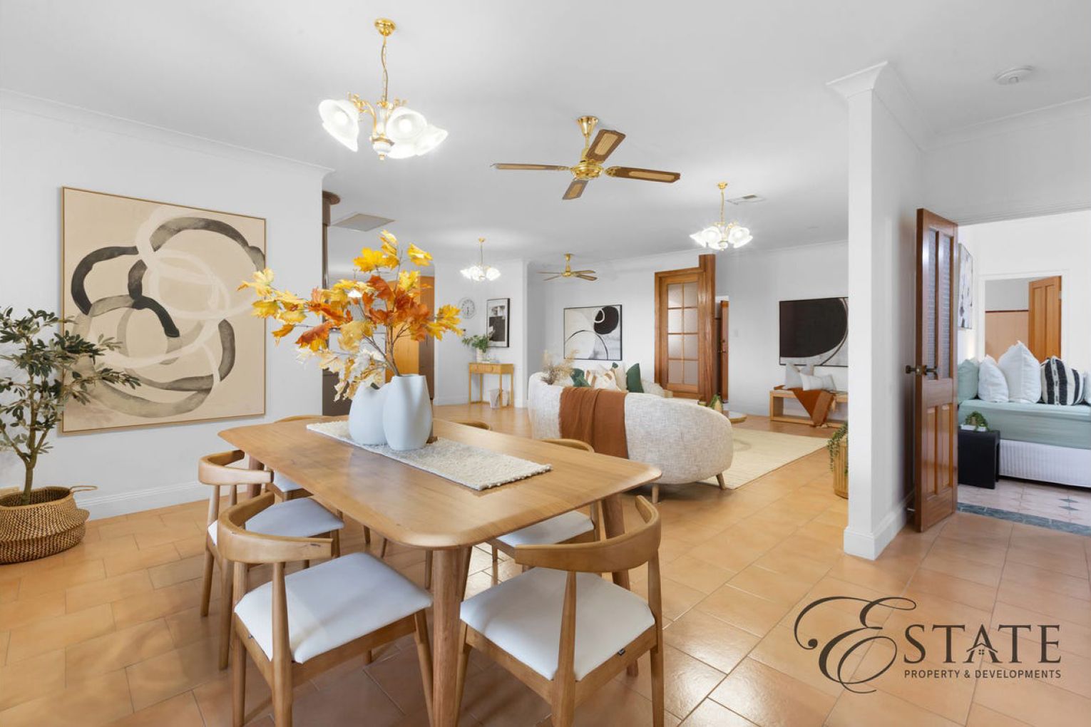 A flexible floorplan allows for multi-generational living or dual-family accommodation, with four bedrooms, two bathrooms, a spa retreat and expansive utility spaces.