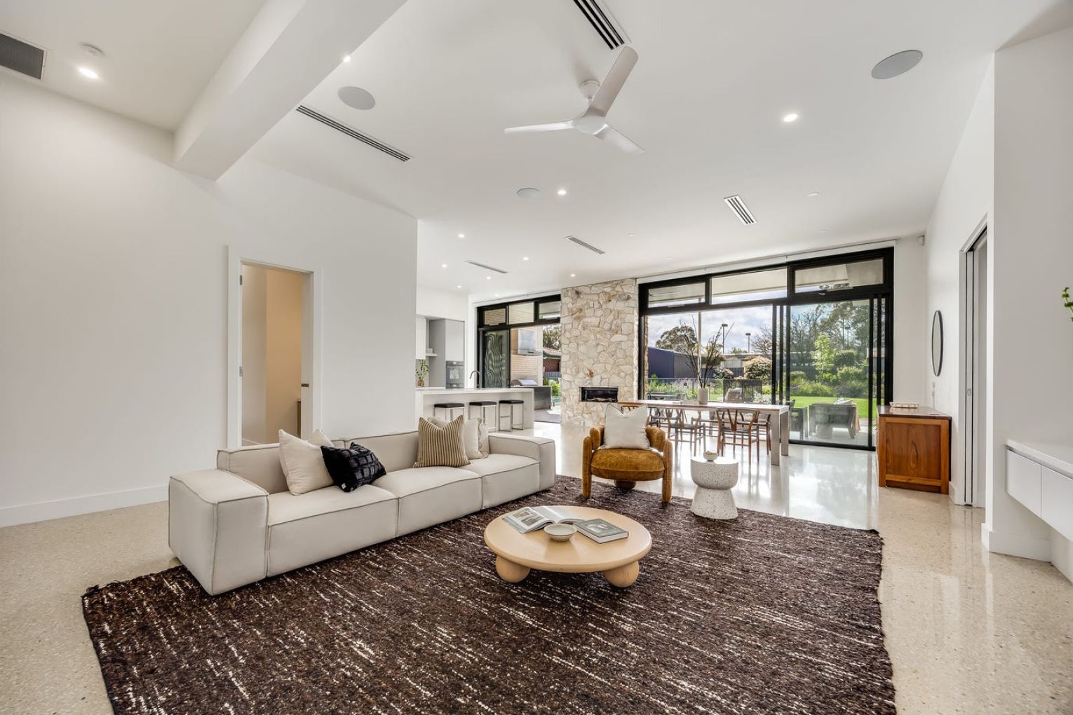 Stacked glass doors peel back to extend the lines alfresco, full outdoor kitchen keeping every conversation flowing. A frameless glass fence frames a sparkling heated pool, while lush lawns, established gardens, veggie patch, and a workshop finish the grounds with the ultimate outdoor empire.