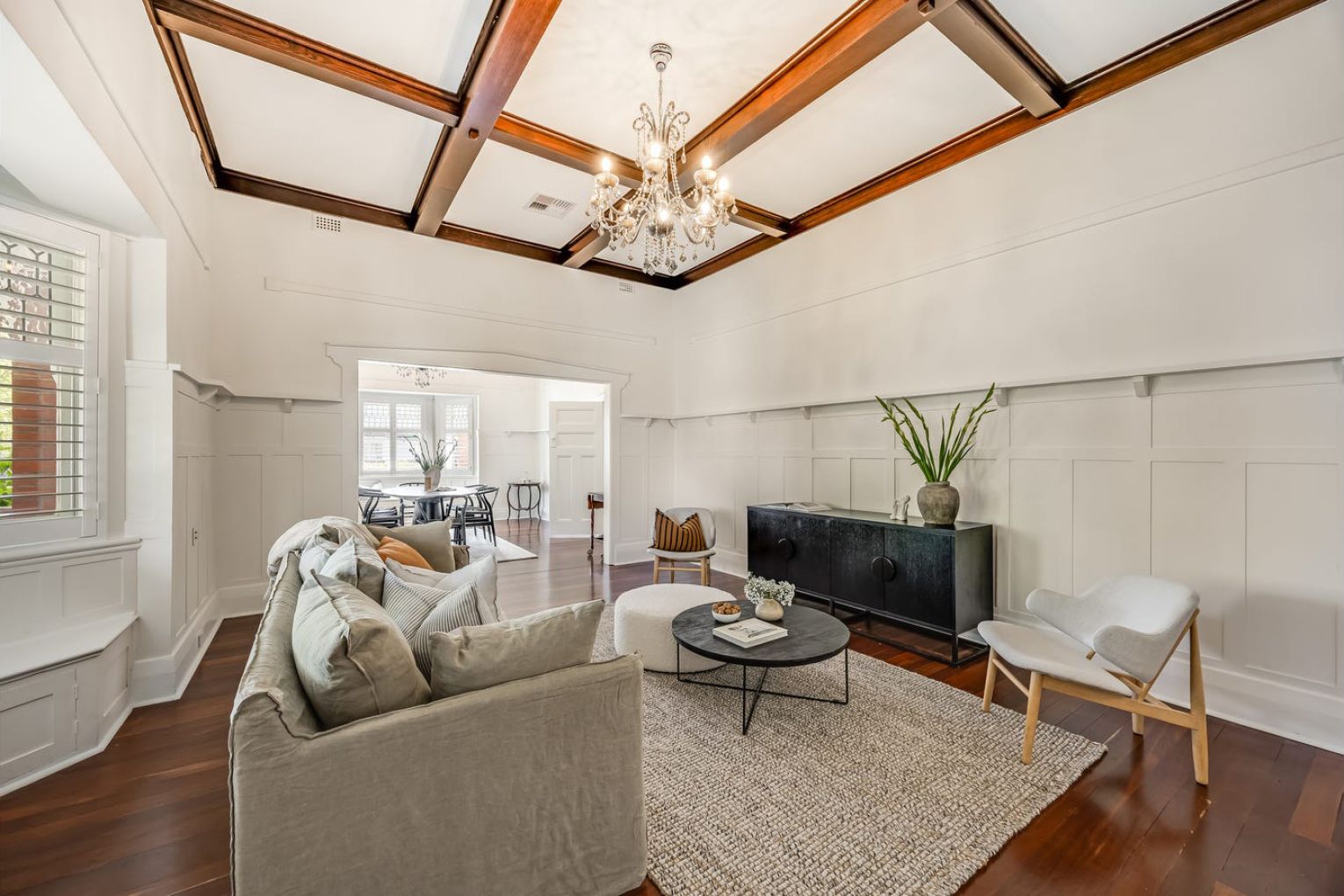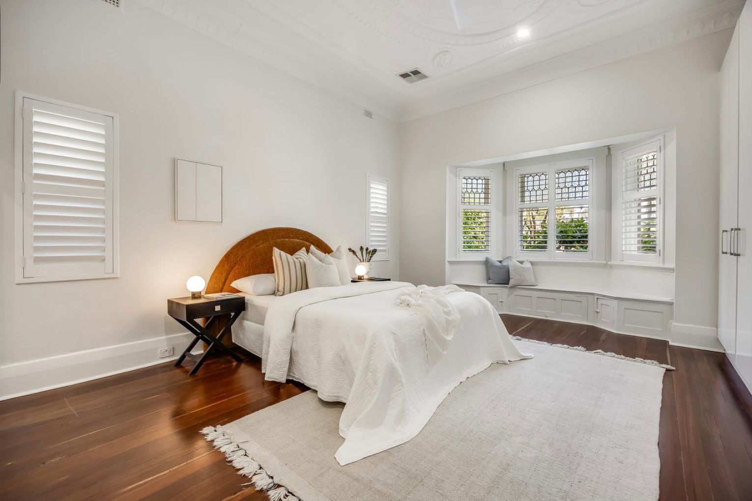 An oversized entry hall and connected formal reception rooms celebrate the original footprint, canopied by soaring decorate ceilings and wrapped in Tudor-glass bay windows, while a decadent main suite has been upscaled into a hotel-like retreat with its own bay window, wall-to-wall and walk-in robes, and a luxe Italian tiled ensuite.