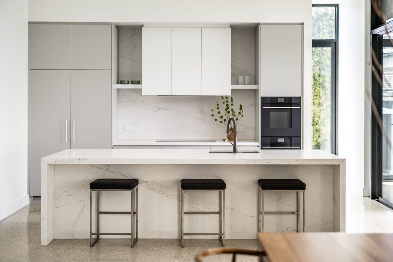 Fast forward and those origins have been expanded. Designed by D’Andrea Architects and brought to life by Zee Constructions in 2022, soaring light-filled spaces meet the old-world details, and every texture – from polished concrete to jarrah, glazed brick to marble, ornate to sleek – engages in a dialogue that elevates both to heights neither could reach alone.