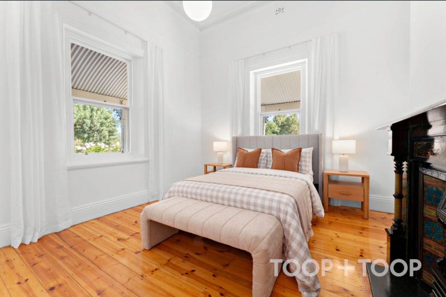 Behind its commanding façade, the home reveals four generous bedrooms, including an impressive master retreat with bay window, a walk-in robe and private ensuite. Original features—Baltic timber floors, 13ft high ceilings, ornate fireplaces and underground cellar honour its heritage, while the expansive open-plan living addition at the rear delivers space and comfort for contemporary living.