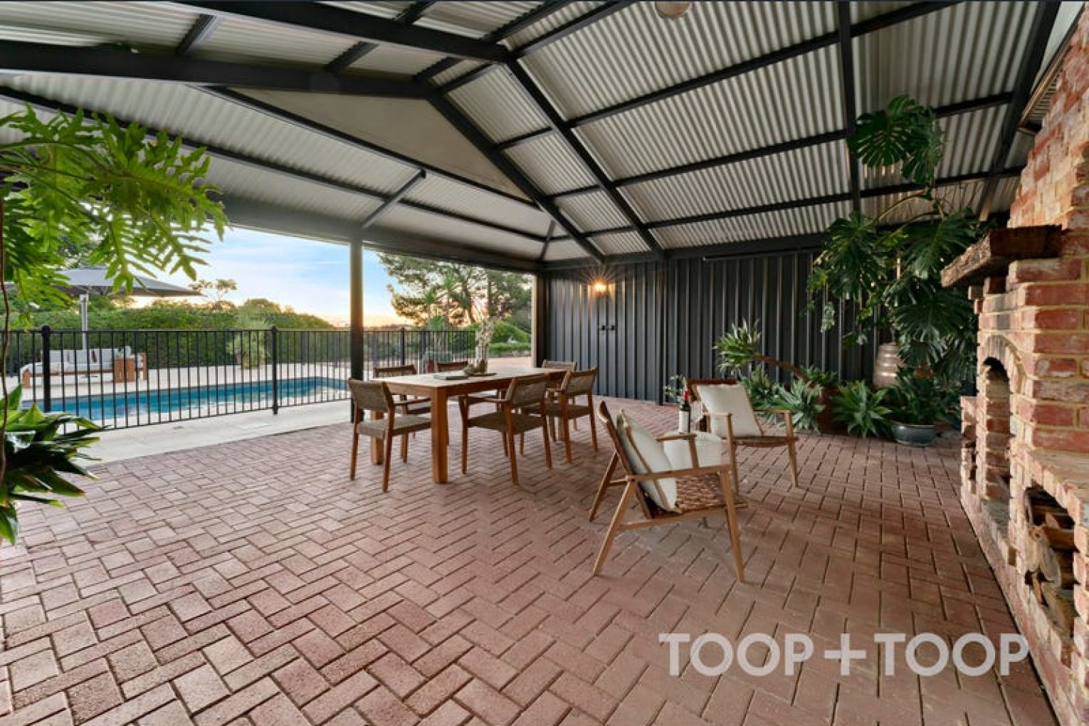 * Outdoor entertaining with open fireplace