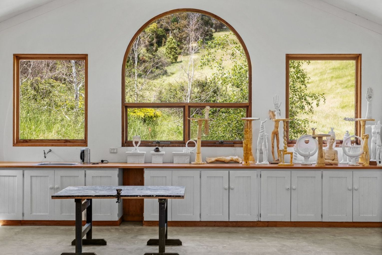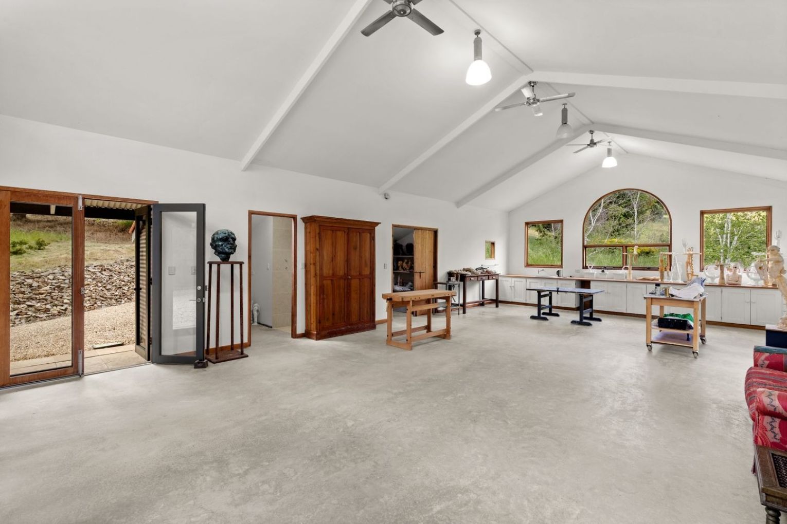 Also located on this title is an artist’s studio, thoughtfully designed to take full advantage of natural light. With preliminary plumbing in place for a bathroom and kitchen, it presents the potential for conversion into self-contained accommodation (subject to planning approval) or a creative retreat.