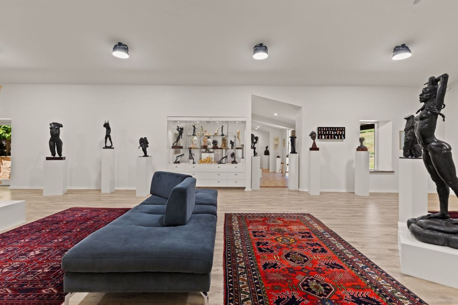 Title One – Approximately 6,448 sqm. Occupying a prominent corner position, this title features a spacious, well-appointed family residence complemented by a purpose-built art gallery. Perfectly suited to an art enthusiast or collector, the gallery space could just as easily be reimagined as a stunning showroom for a classic car collection or, subject to planning consent (STPC), as additional accommodation or a bespoke studio retreat.