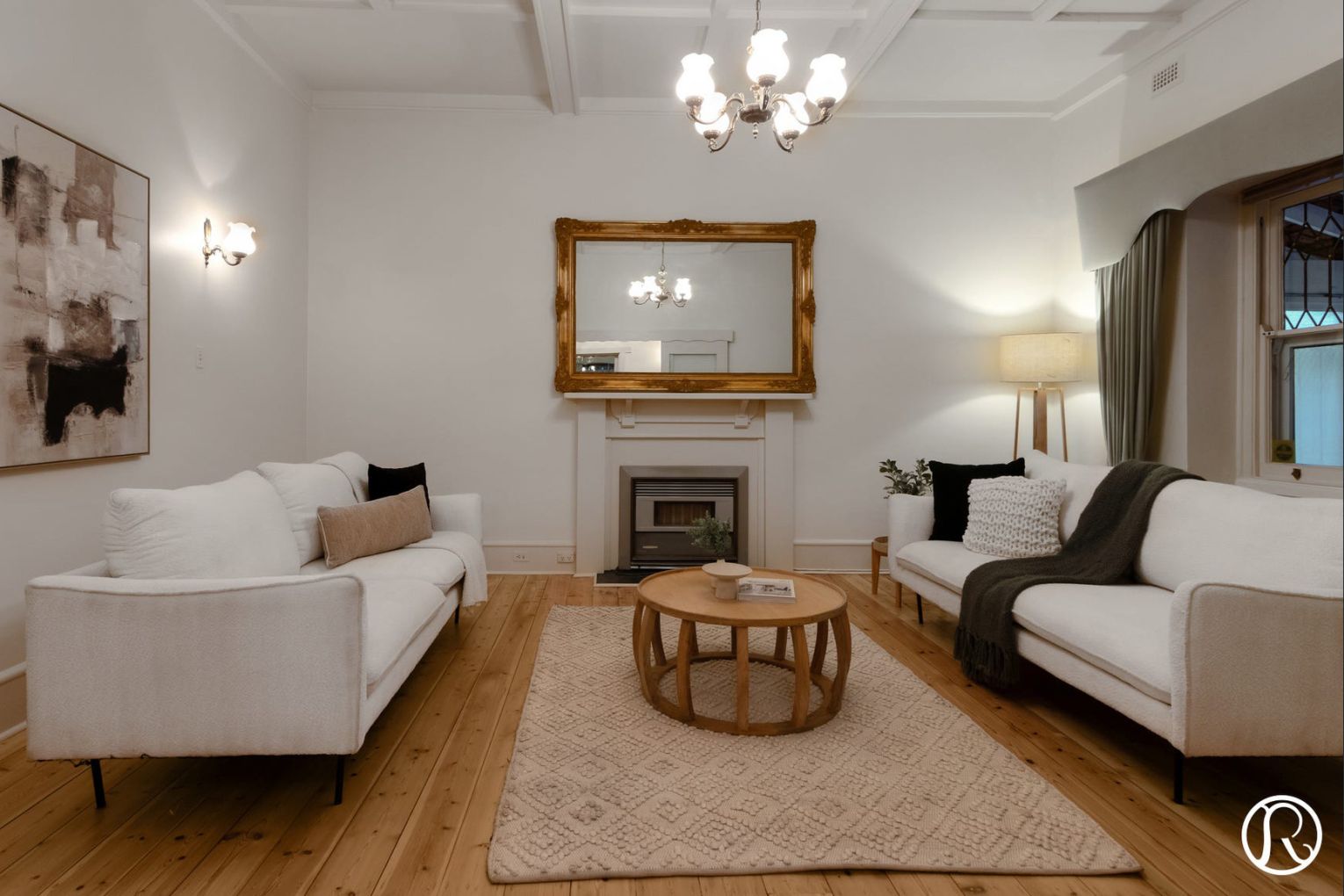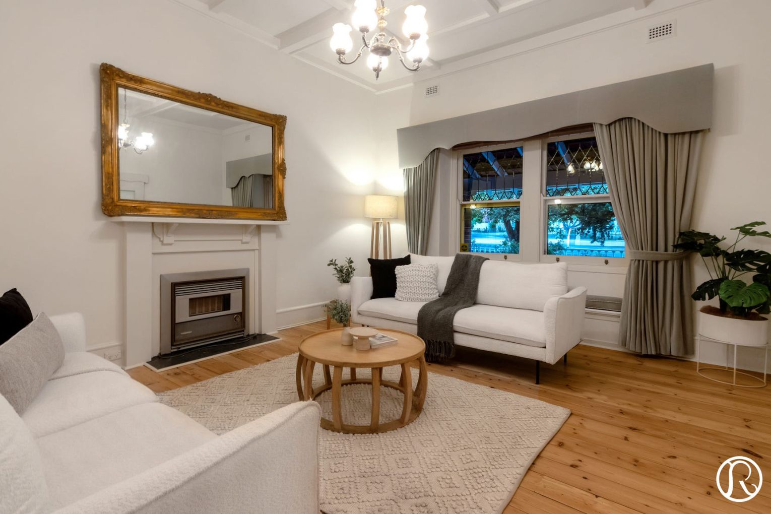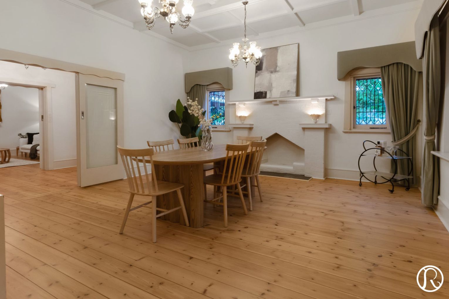 Step inside and discover a divine residence showcasing extra high ceilings, beautiful wide passageways and generous proportions that evoke the grandeur of a bygone era. Orante and timber panelled ceilings add rich architectural texture, while freshly polished wide board pine flooring flows seamlessly beneath your feet, reflecting both warmth, grace and elegance. Classic bay windows invite natural light into the interiors, further enhancing the sense of space and charm with classic bay window seating.