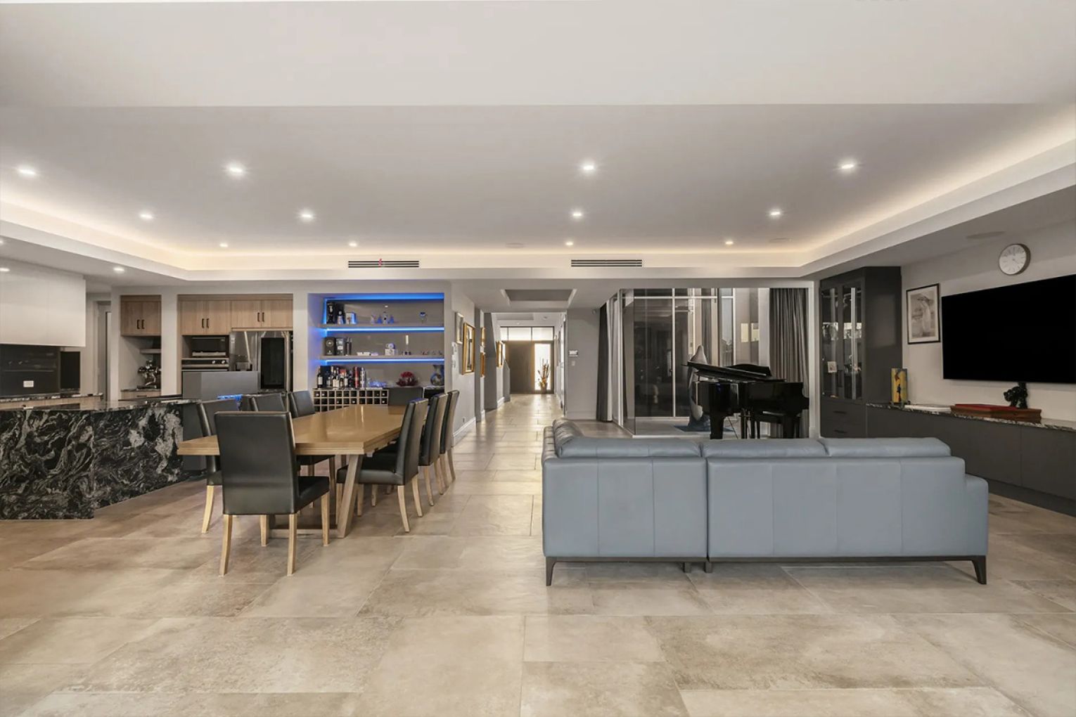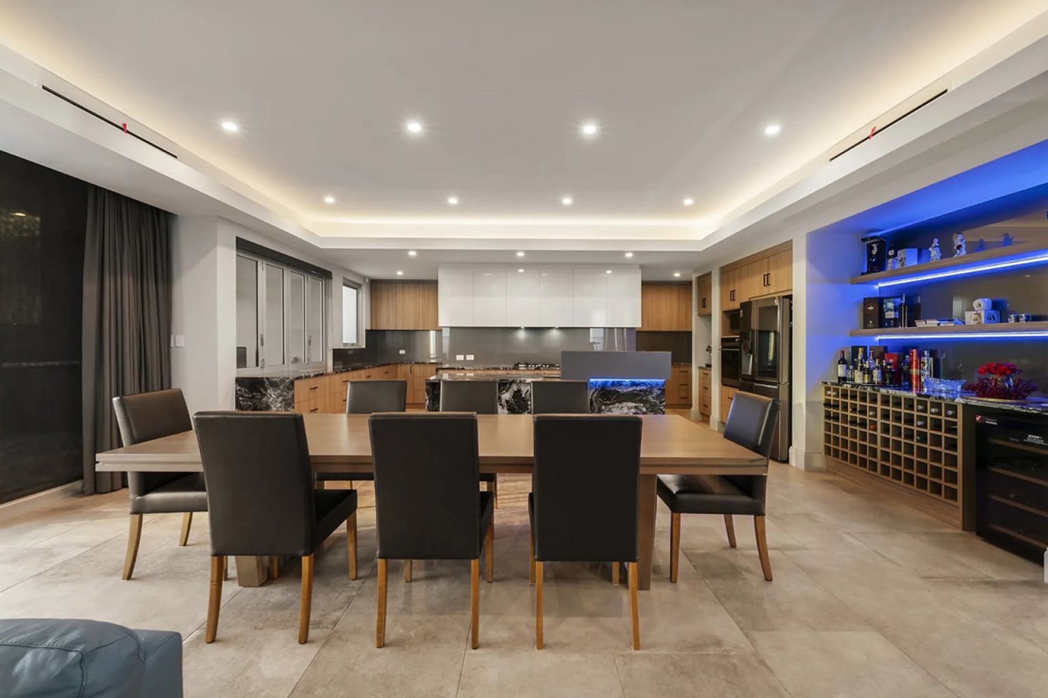 With effortless alfresco flow through wide sliding doors, a huge outdoor entertaining area with gleaming in-built BBQ zone overlooks a sparkling sunbathed swimming pool, clinching impeccable indoor-outdoor hosting potential.