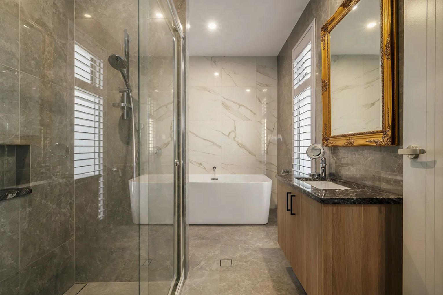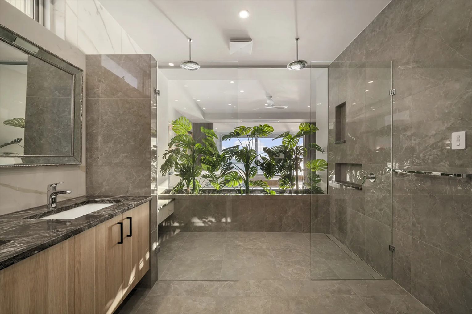 Crowning this impressive upper level is a resort-inspired master suite featuring generous WIR/BIR and dressing table, in-set spa bath and opulent ensuite, alongside 2 bright and airy bedrooms and luxe family bathroom.