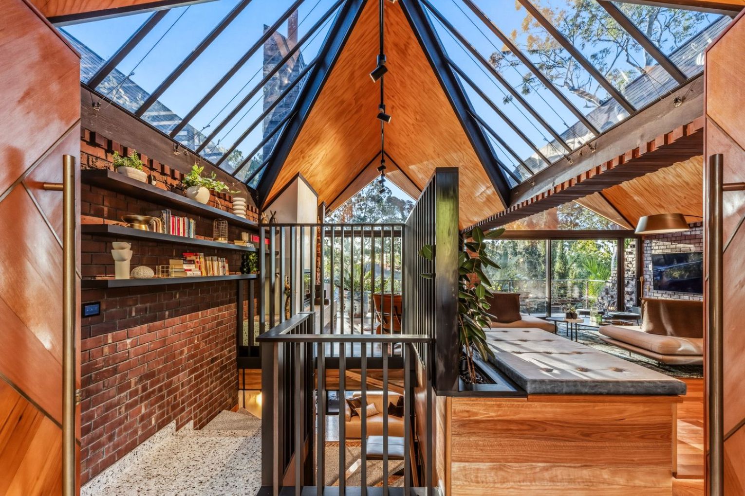 In places, the glass climbs all the way to the roofline, framing treetop canopies and distant views toward the Stonyfell ranges in compositions that feel more alpine retreat than suburban address.