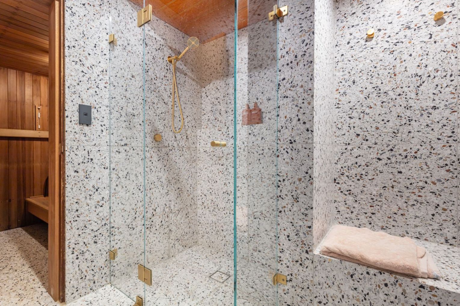 Across the home’s dynamic footprint are four bedrooms, four bathrooms, multiple living areas, a sauna, an expansive cellar and a lower-level retreat complete with games lounge. The main suite, sitting in its own wing, steps away from the rest of the home and into a ‘rainforest’ ensuite.