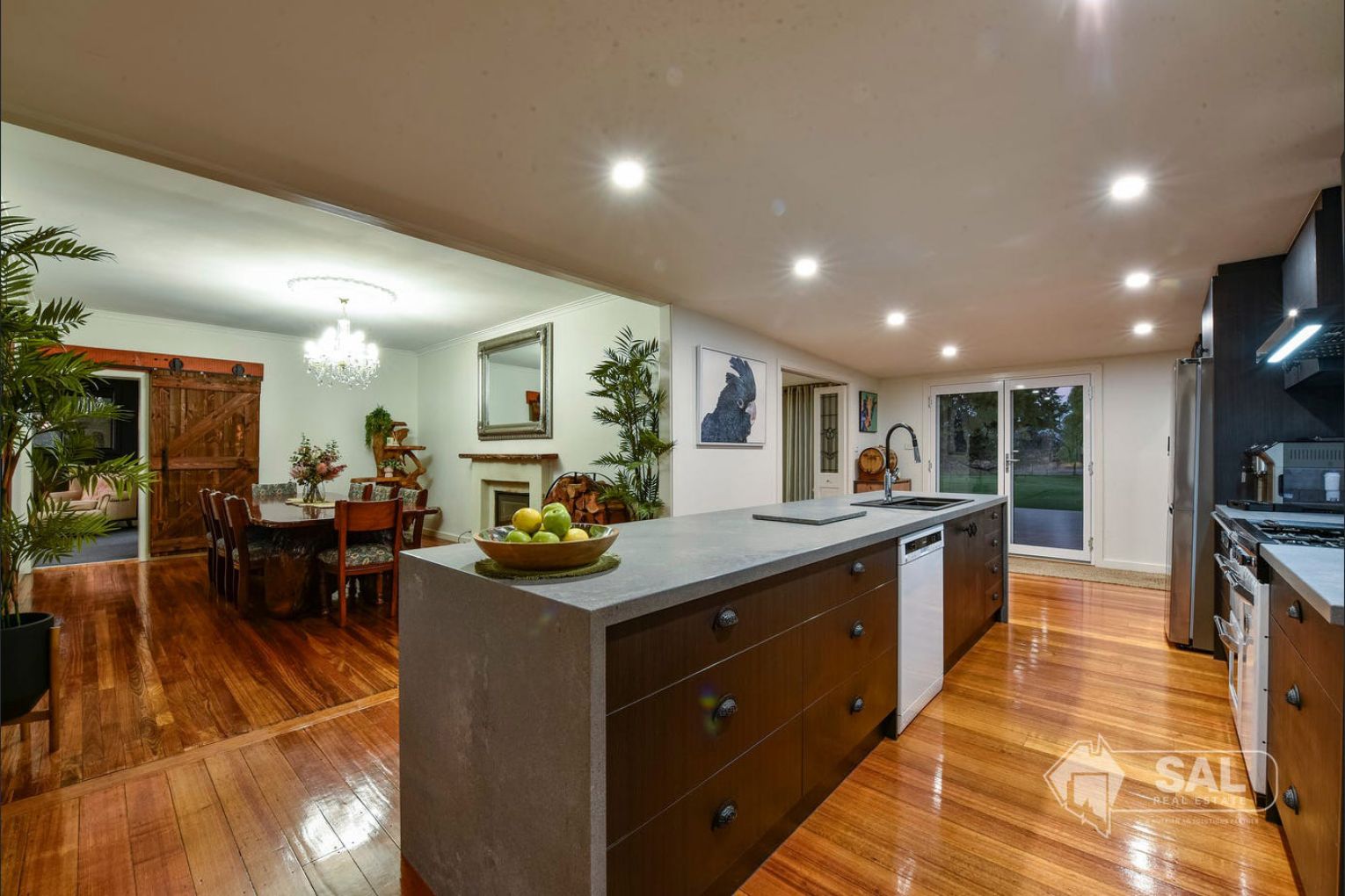 Close your eyes and imagine relaxing on the porch to watch the sunset over the paddocks. The versatile layout is ideal for family living with five spacious bedrooms, or 4-bedrooms and an office, kitchen with 5m waterfall benchtop & breakfast bar, multiple living areas, and endless rural views. The property features 4 paddocks with great fencing perfect for horses, livestock and even cropping. The equipped bore services the pop-up irrigation, 2x dams, and water troughs in each paddock. There is ample rainwater servicing the home, great shedding, and a back-up generator that will run the whole home – everything has been thought of in this property, all there is to do is move in!