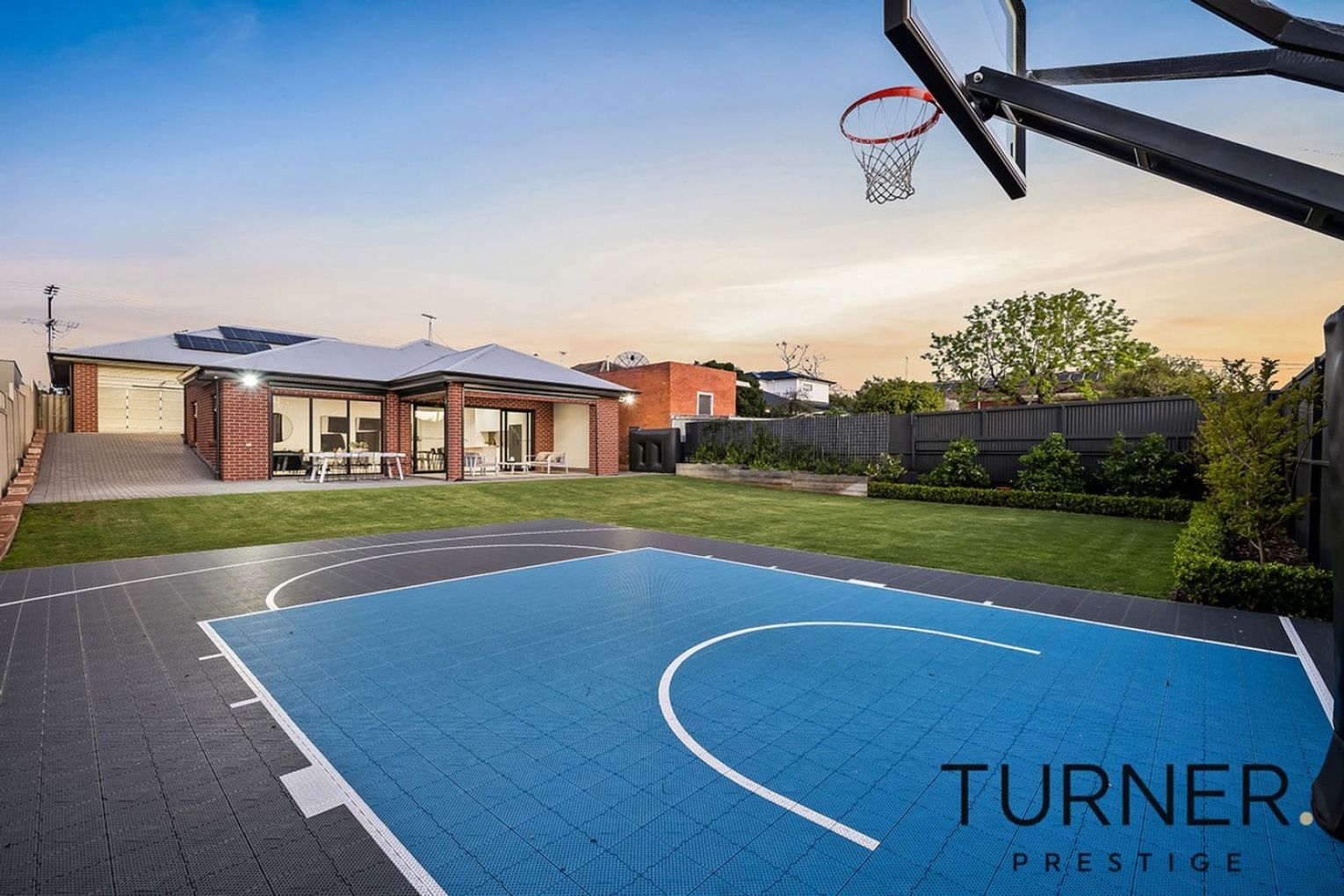 The large, private landscaped backyard is a standout, ideal for kids, pets, and weekend entertaining. Families will love the professionally constructed basketball court, lush lawn area, and low-maintenance garden.