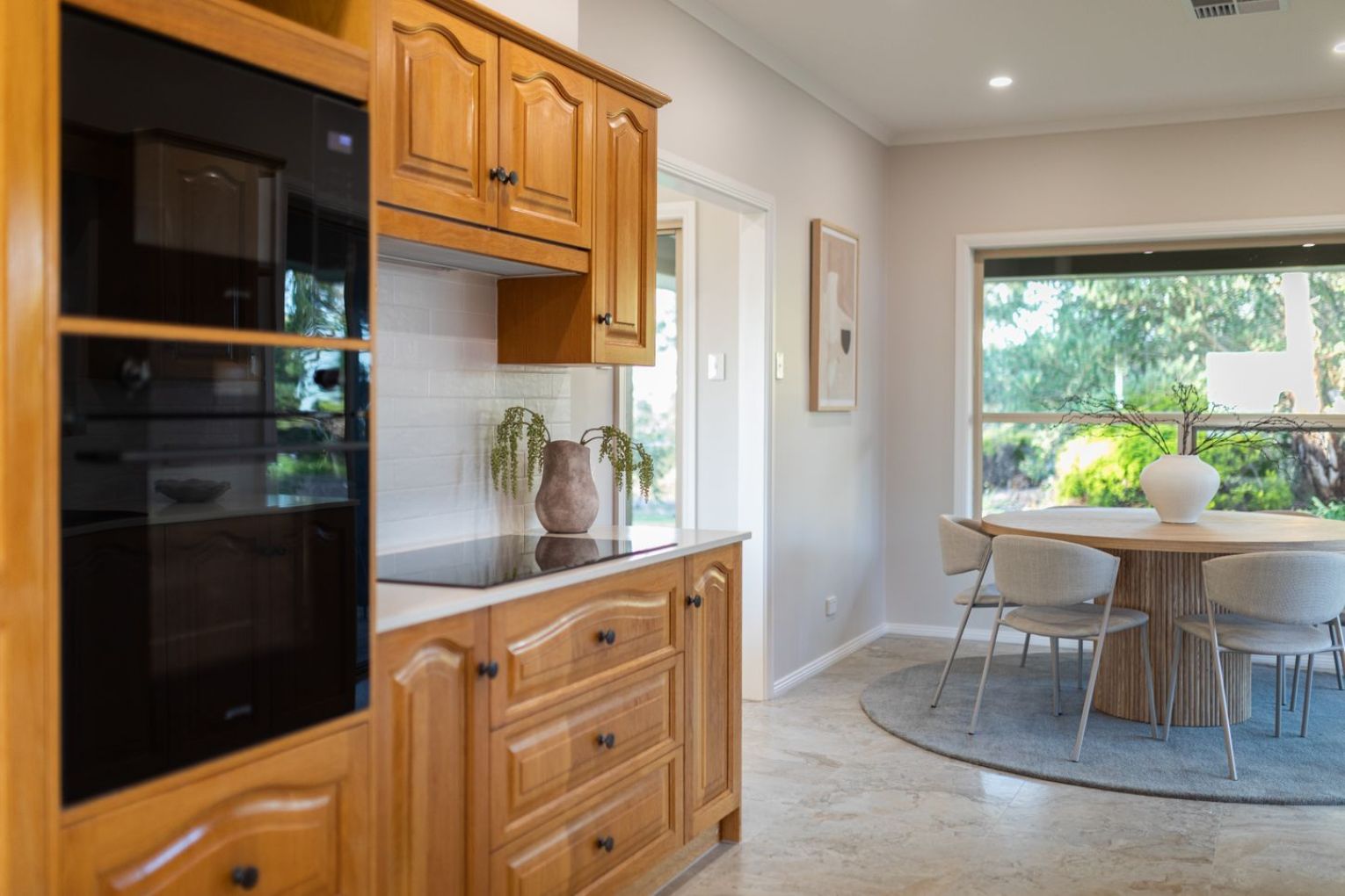 Entertaining areas invite long lunches and relaxed evenings, with the home opening effortlessly to paved outdoor spaces framed by lush lawns and established gardens. There’s a sense of ease here nothing forced, just spaces that naturally draw people together.