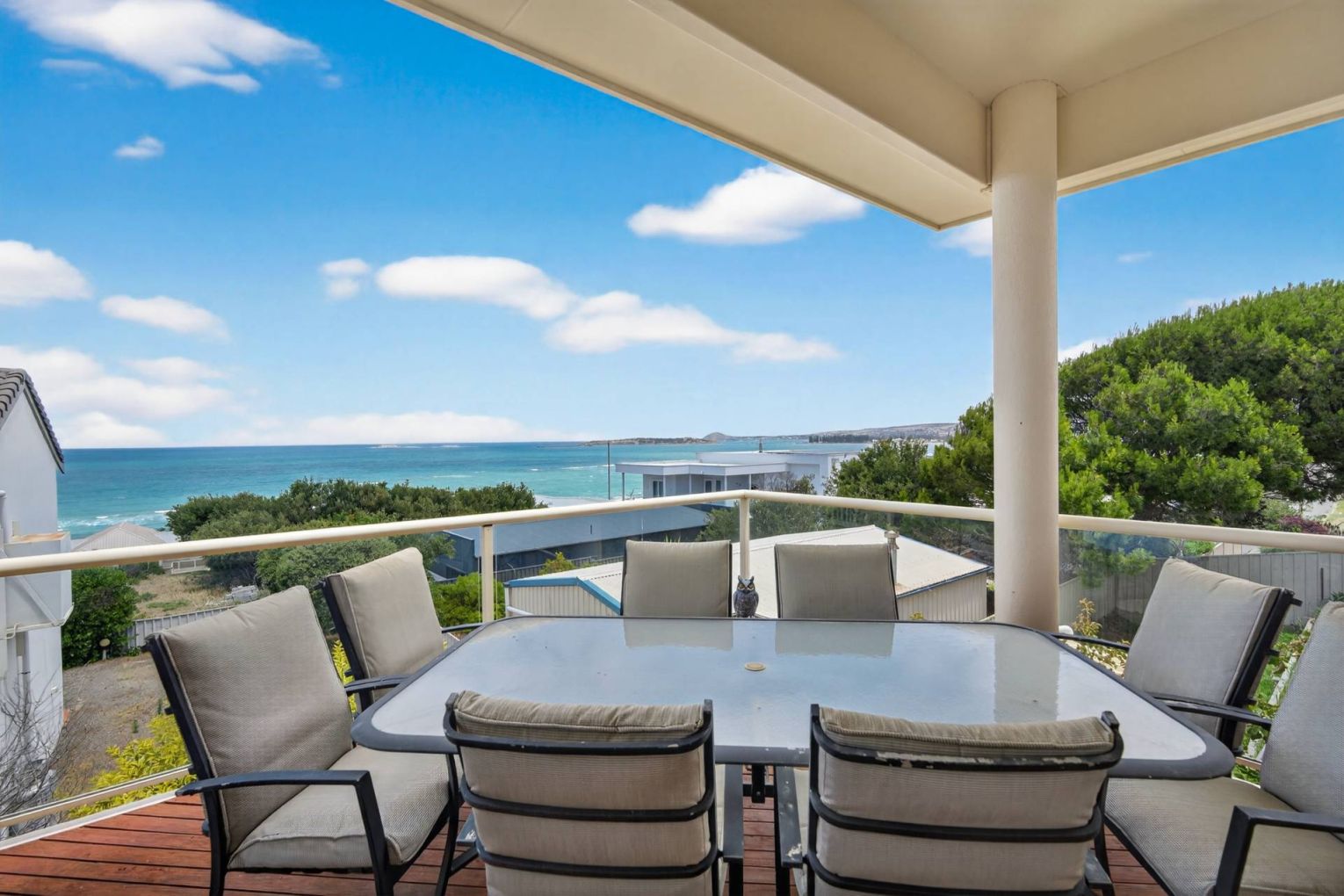 The expansive open-plan living, dining and kitchen zone captures sweeping ocean views from almost every angle, flowing effortlessly to two balconies where the outlook is simply breathtaking. From here, gaze right across The Bluff, Granite Island and Victor Harbor, or look left along the pristine curve of Hayborough Beach towards Port Elliot, an almost front-row seat to the Fleurieu’s most iconic coastline.